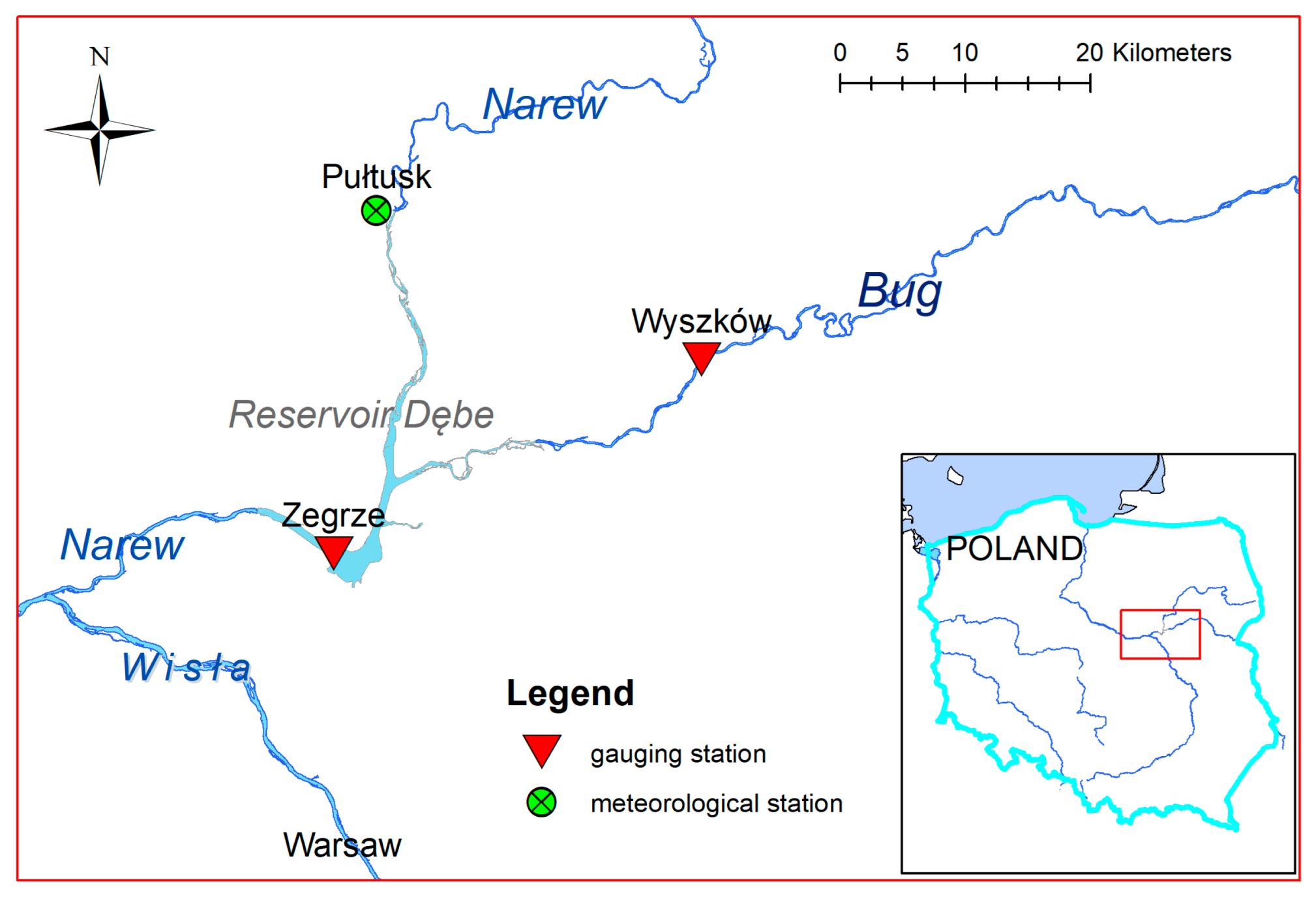 - Wydawnictwa Komunikacji i Łączności. Rocznik Hydrograficzny 1939-1941, Dorzecze Wisły; Wydawnictwa Komunikacji i Łączności: Warszawa, Poland, 1962. [Google Scholar]