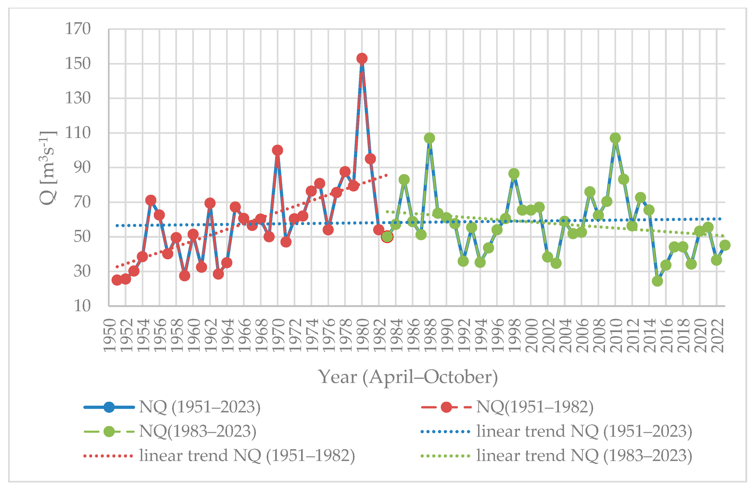 - Brzezińska, W.; Wrzesiński, D. Maximum River Runoff in Poland under Climate Warming Conditions. Quaest. Geogr. 2025, 44, 85–105. [Google Scholar] [CrossRef]