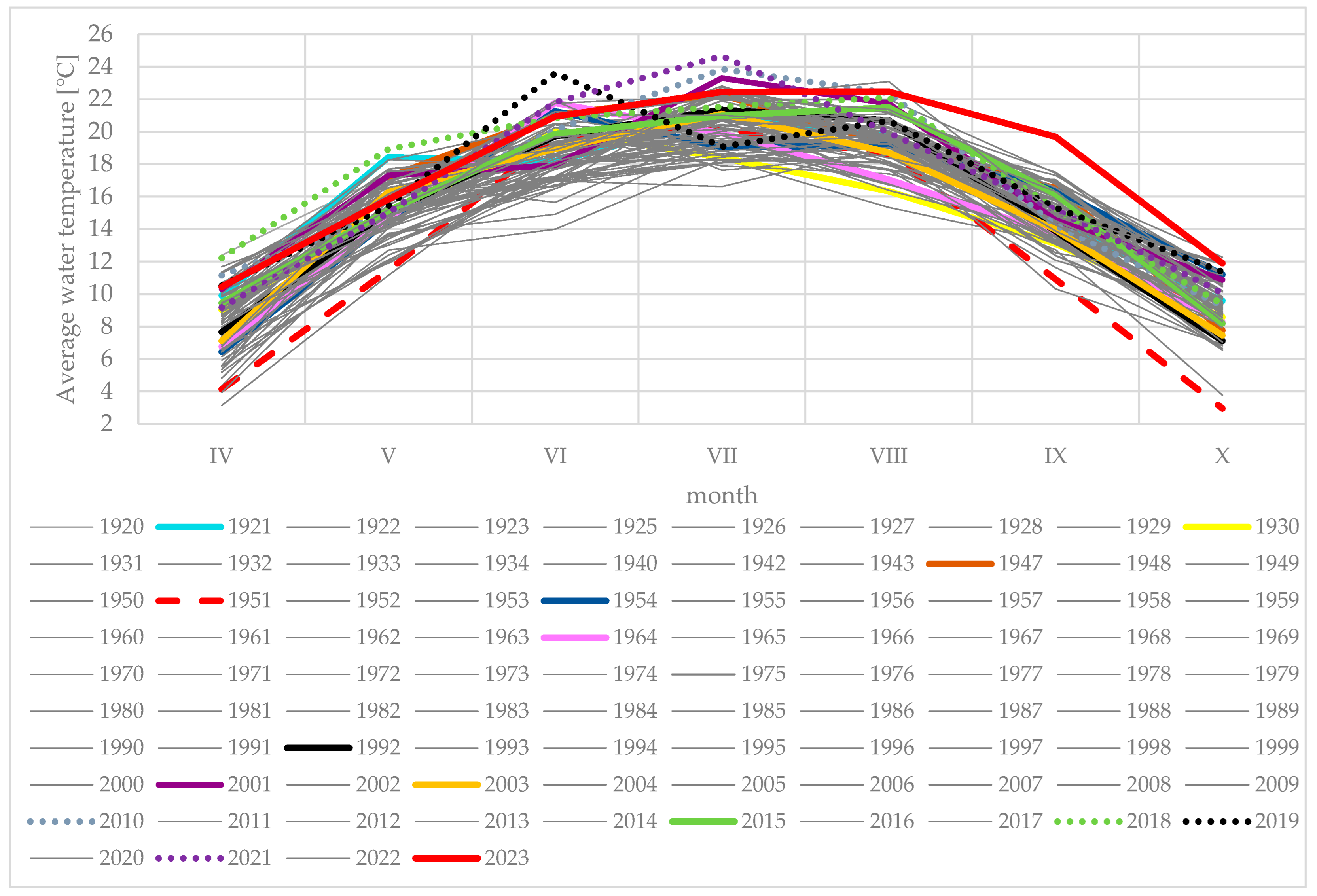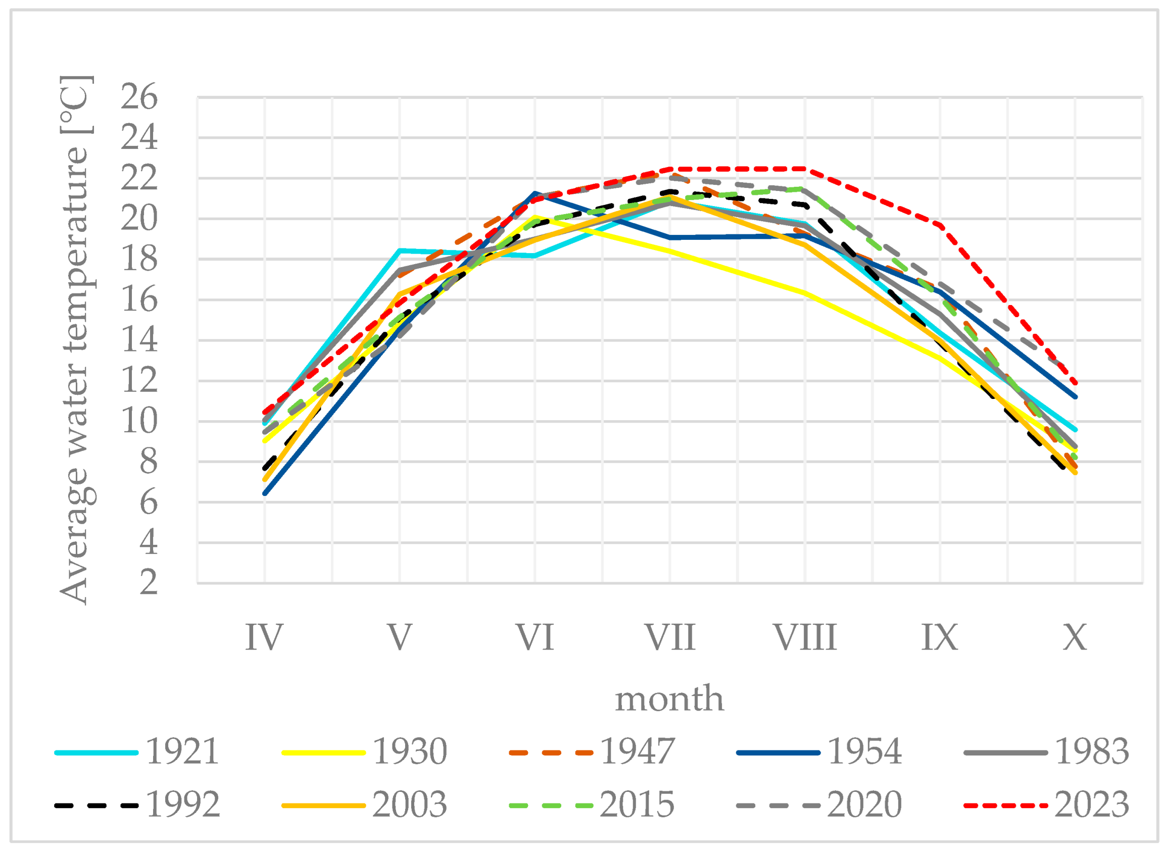 - Graf, R.; Wrzesiński, D. Detecting Patterns of Changes in River Water Temperature in Poland. Water 2020, 12, 1327. [Google Scholar] [CrossRef]