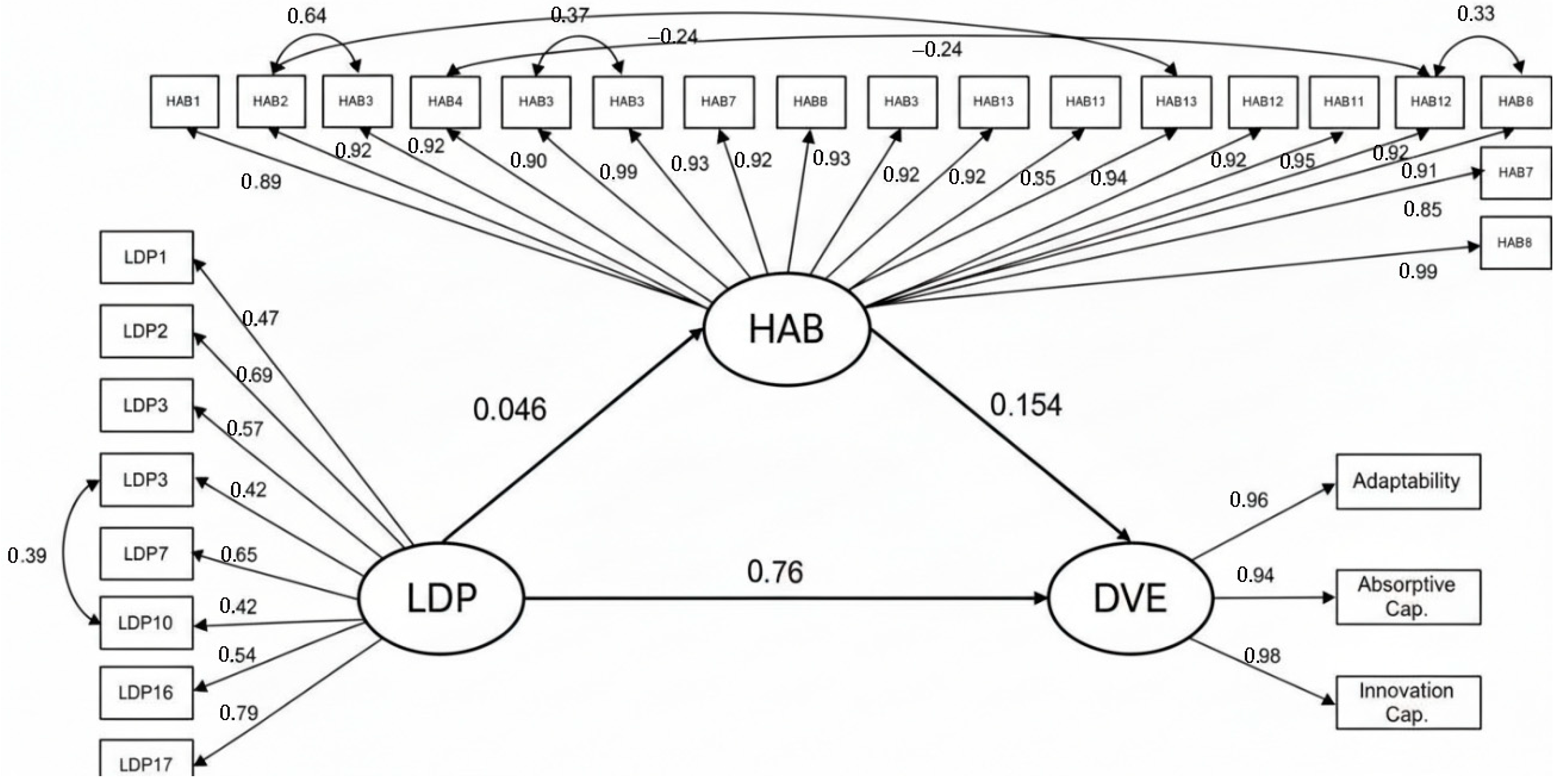 14], the absence of mediation may be mainly due to the fact that the dominant logic is concentrated in the top management of the organization, which generates a very strong direct effect on organizational strategic diversification, thus negating the need for a mediation process through BI&A competencies [