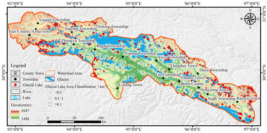 Distribution of glacial lakes in the Palong Zangbu Basin.