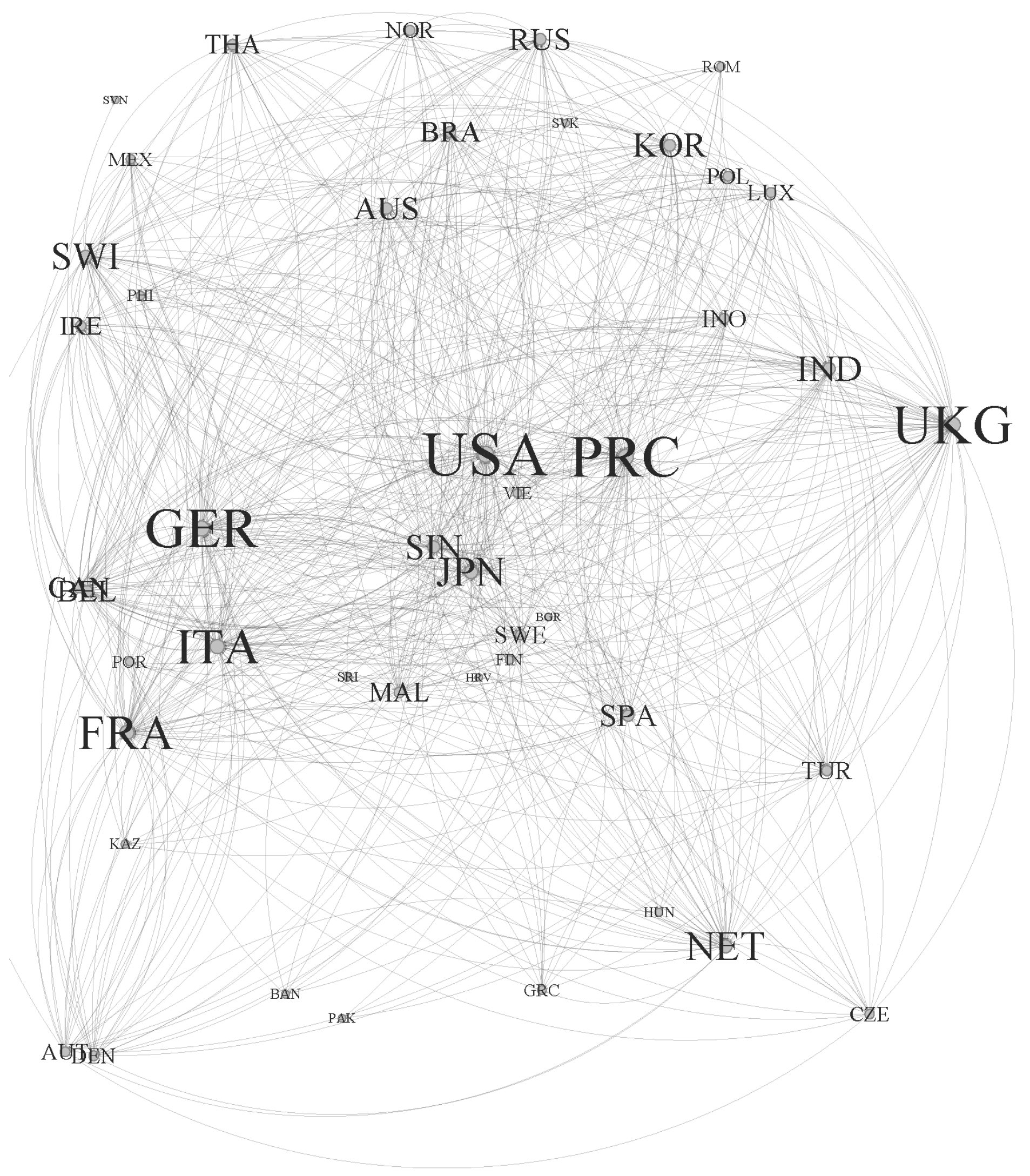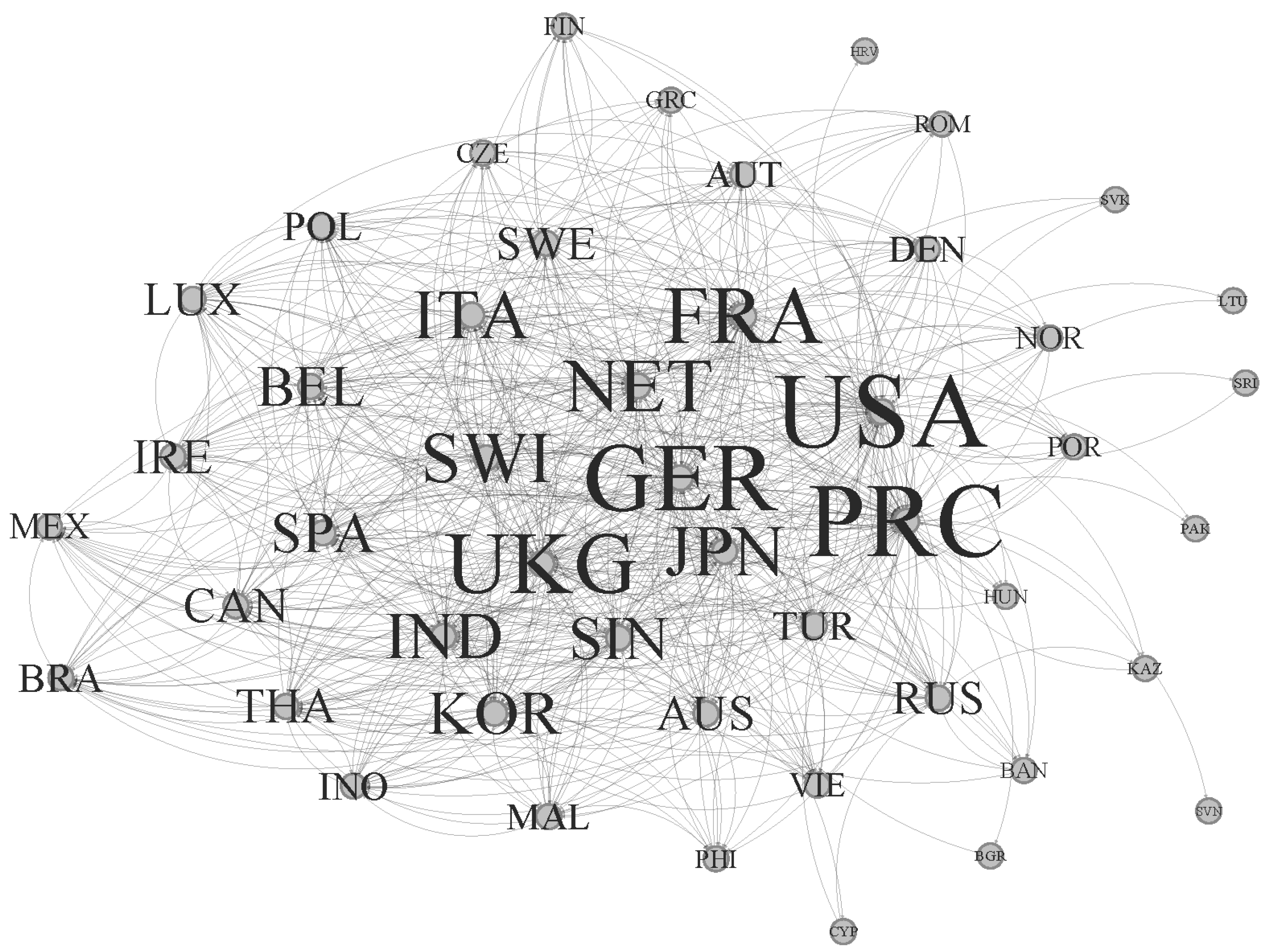 2.3.1. Network Metrics of Financial Services Global Value Chains