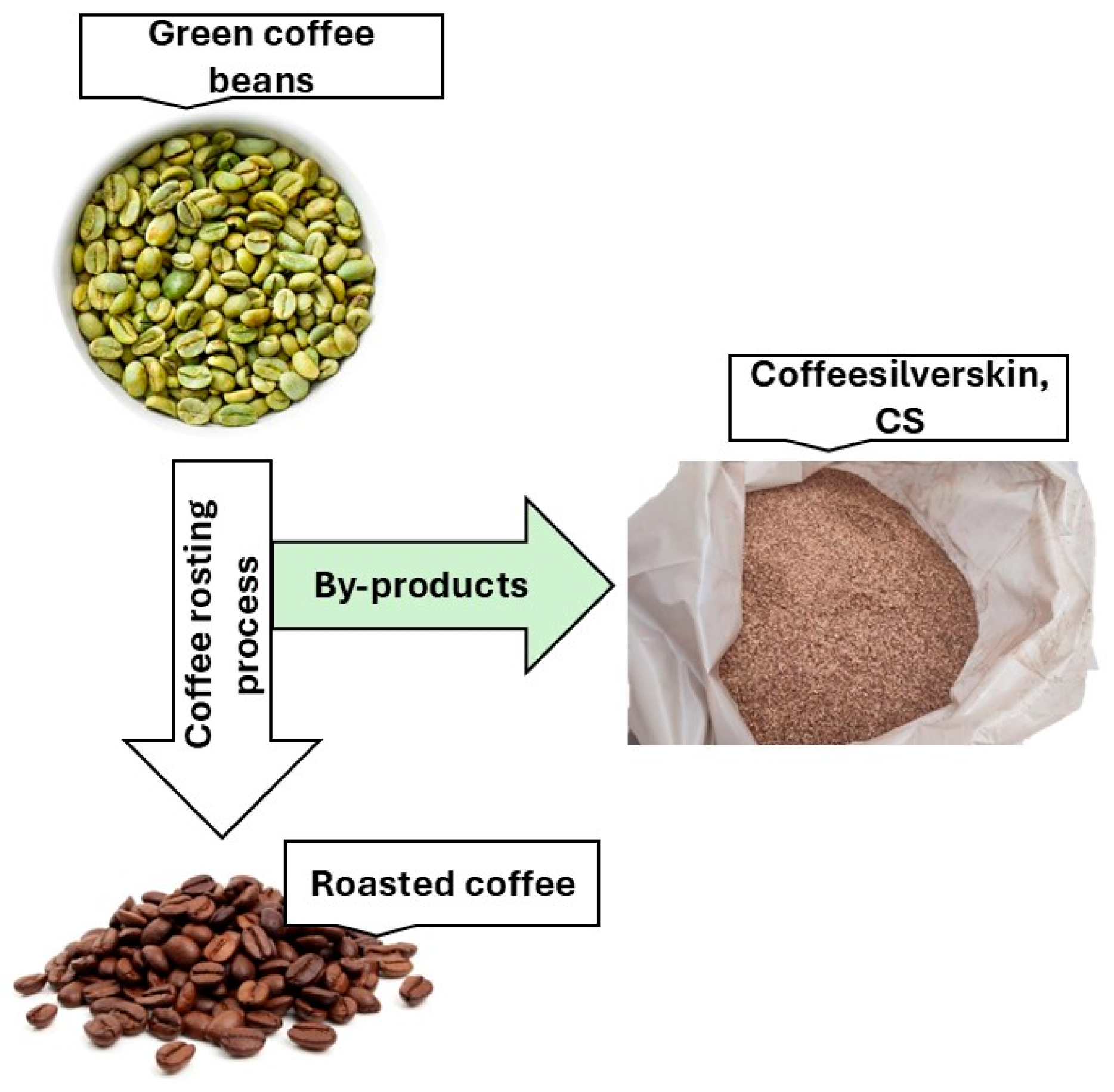 Figure A1. Coffee roasting process and generation of coffee silverskin (CS) as a by-product.