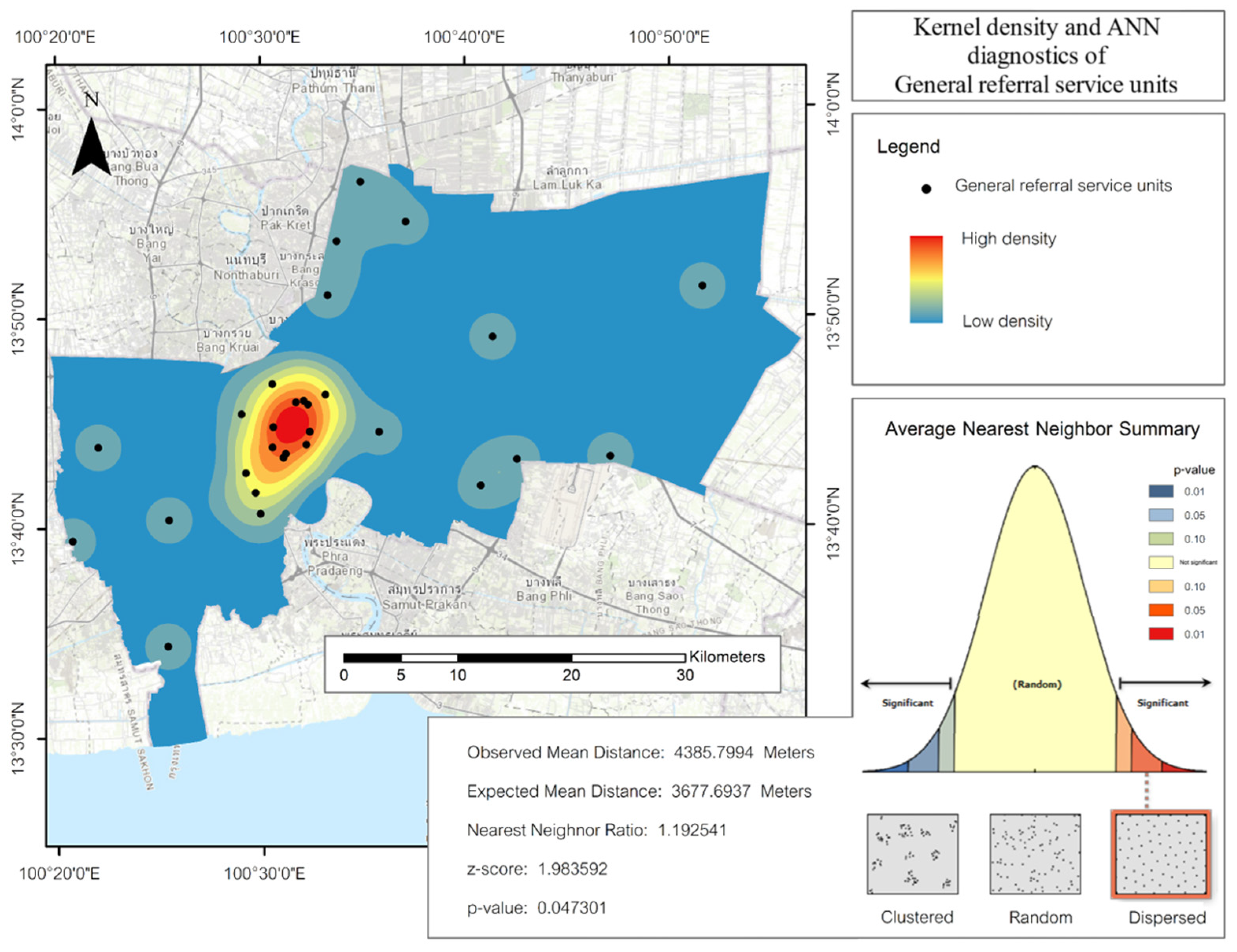 | Liu et al. (2022) [11] | Chongqing, China | ANN, KDE, Accessibility Models | Used Average Nearest Neighbor (ANN) and clustering diagnostics to link facility arrangements with core-periphery accessibility differences. |