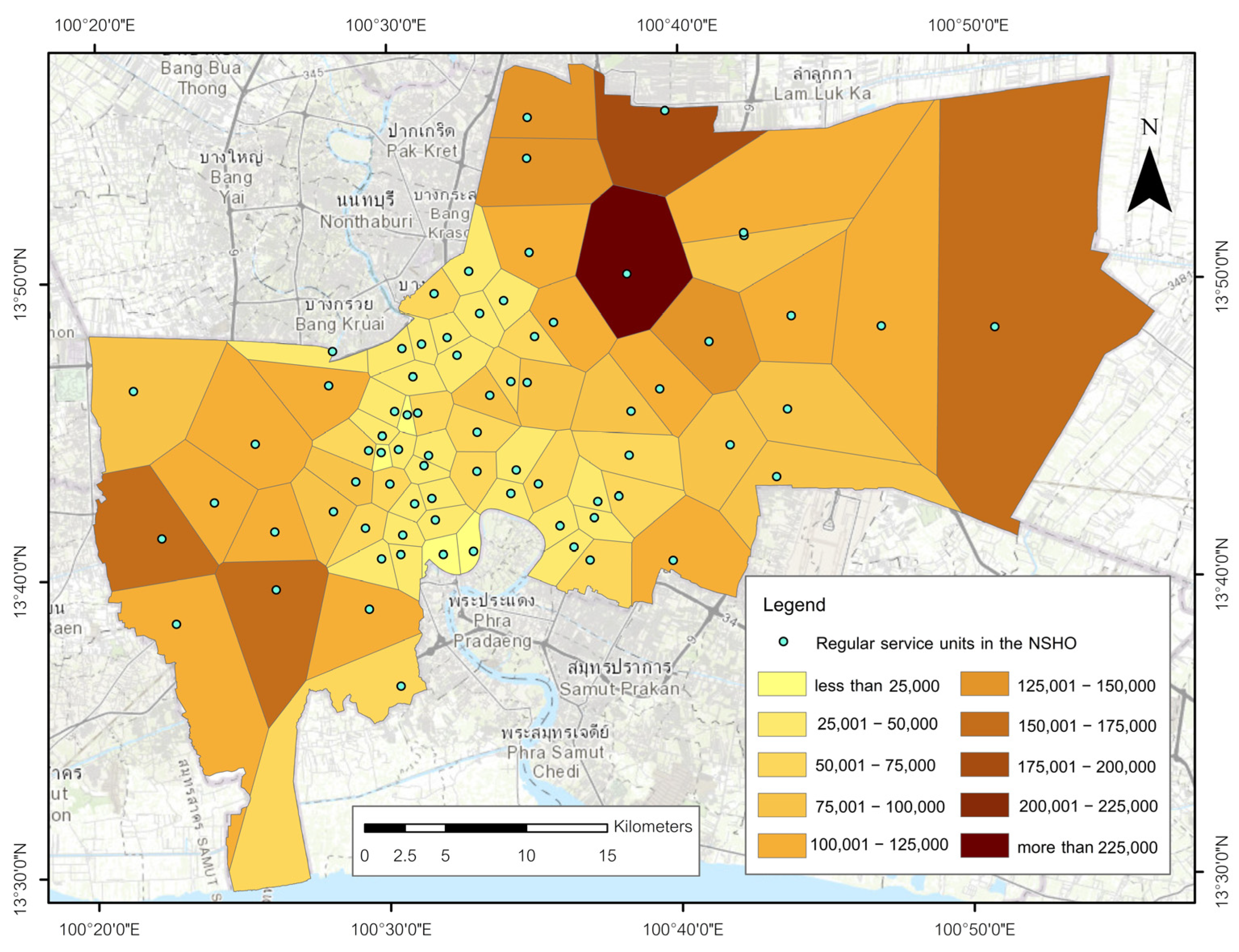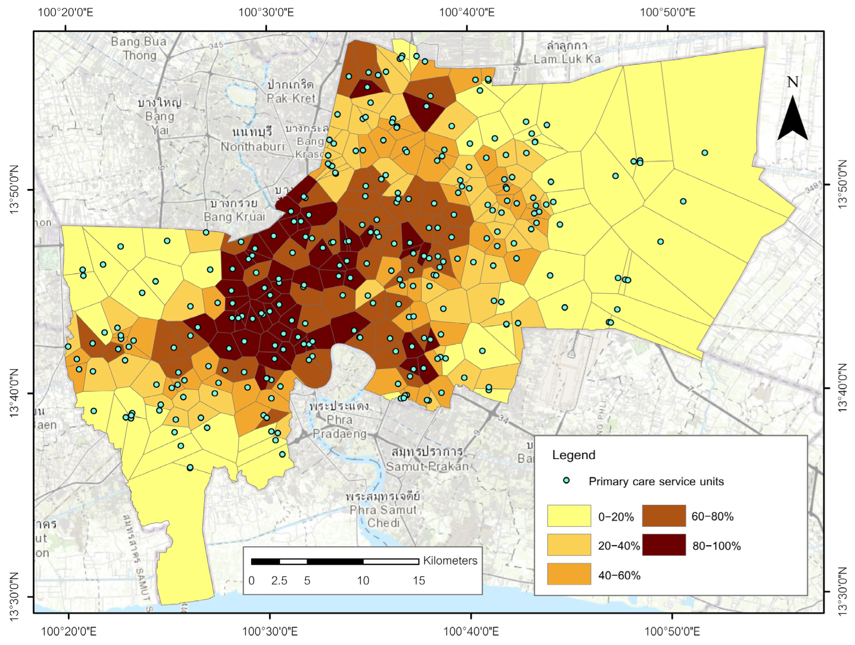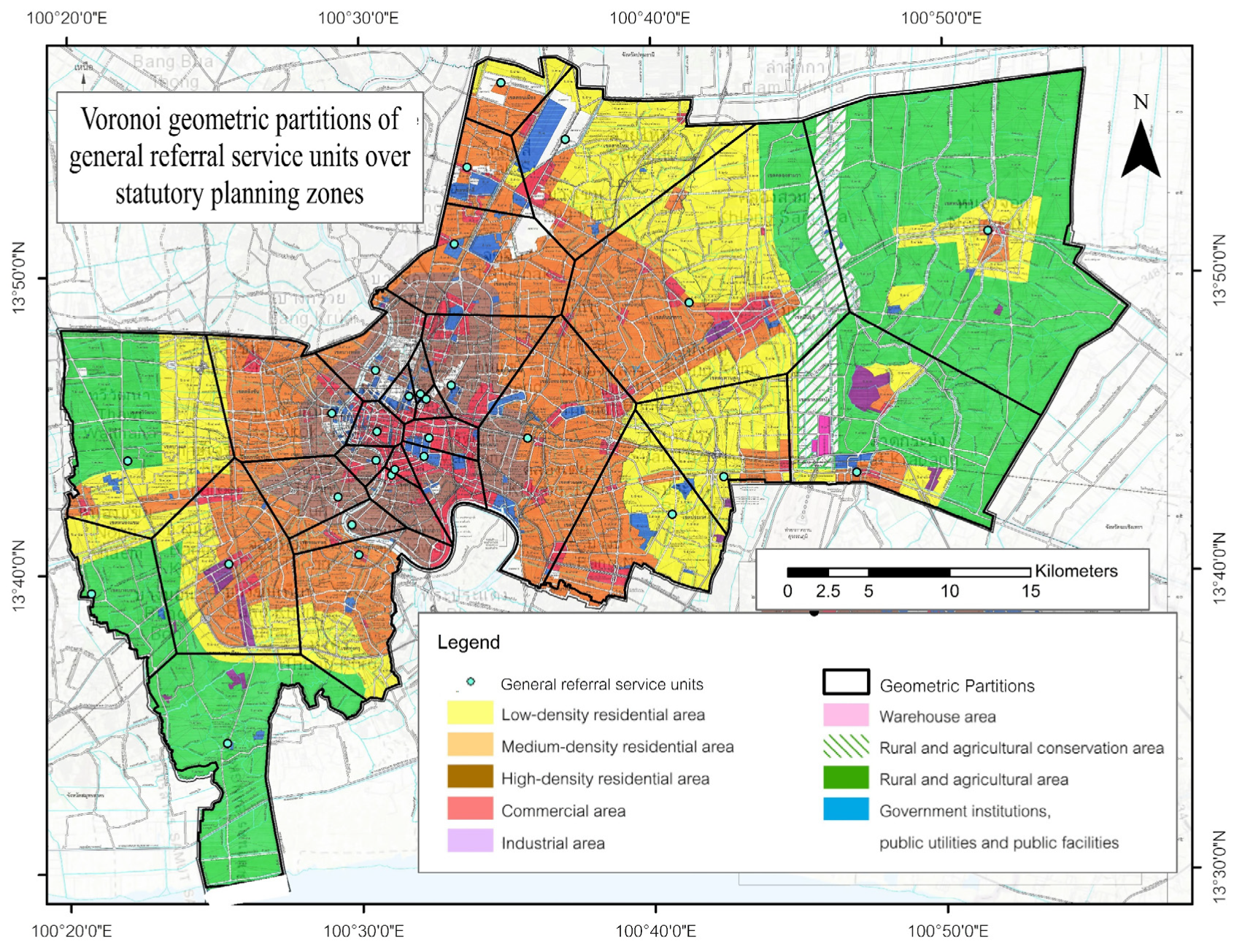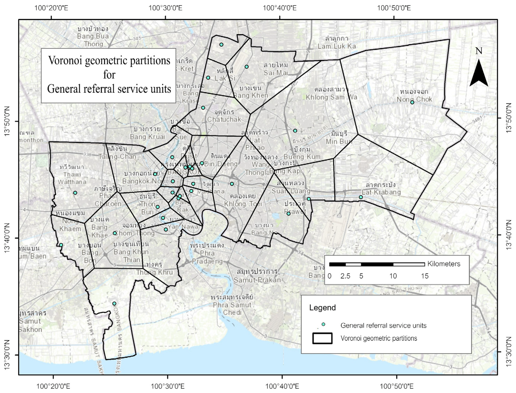 Boonprong, S.; Punturasan, N.; Kamsing, P.; Torteeka, P.; Cao, C.; Piolueang, N.; Satapanajaru, T.; Xu, M. Sustainable Urban Healthcare Accessibility: Voronoi Screening and Travel-Time Coverage in Bangkok. Sustainability 2025, 17, 11241. https://doi.org/10.3390/su172411241