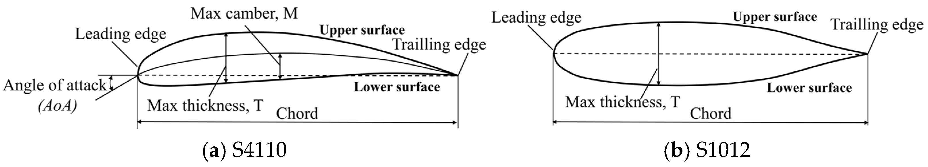 - Surve, M.; Deshmukh, P.D.; Purohit, H. Design and Analysis of New Airfoil and Blade for Micro-Capacity Horizontal Axis Wind Turbine Using QBlade Tool. In Proceedings of the 5th International Conference on Advances in Science and Technology (ICAST), Mumbai, India, 2–3 December 2022; pp. 531–536. [Google Scholar] [CrossRef]