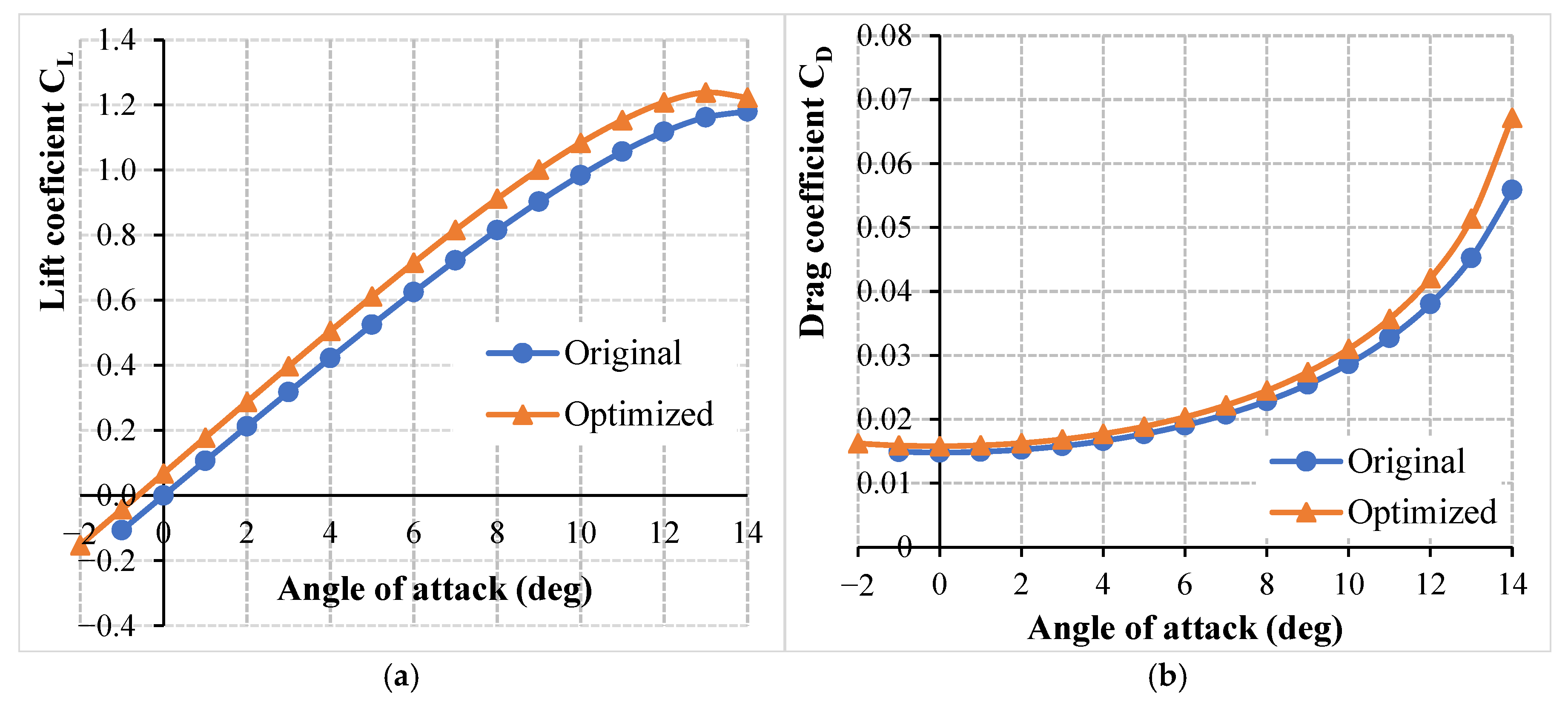 - Davari, H.S.; Davari, M.S.; Kouravand, S.; Kurdkandi, M.K. Optimizing the Aerodynamic Efficiency of Different Airfoils by Altering Their Geometry at Low Reynolds Numbers. Arab. J. Sci. Eng. 2024, 49, 15253–15288. [Google Scholar] [CrossRef]