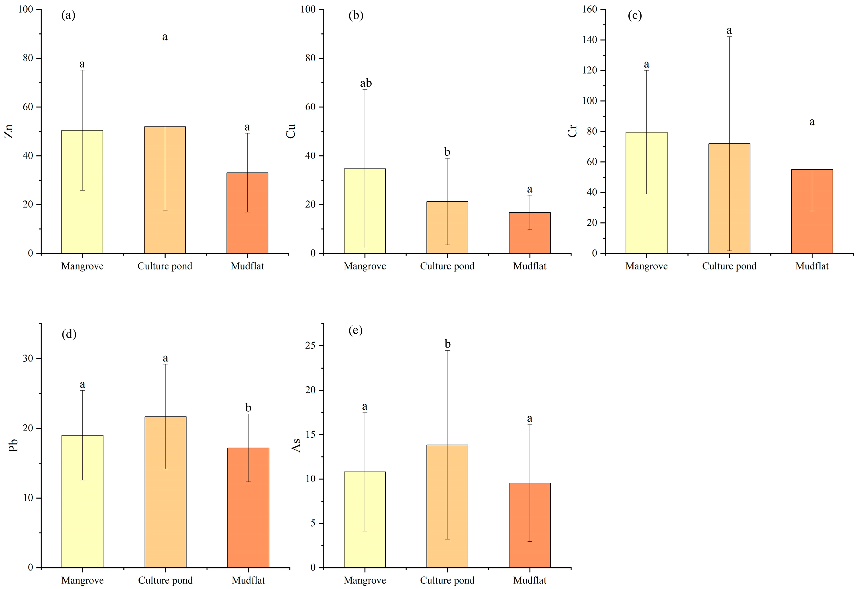 - Li, P.; Li, X.; Bai, J.; Meng, Y.; Diao, X.; Pan, K.; Zhu, X.; Lin, G. Effects of land use on the heavy metal pollution in mangrove sediments: Study on a whole island scale in Hainan, China. Sci. Total Environ. 2022, 824, 153856. [Google Scholar] [CrossRef] [PubMed]