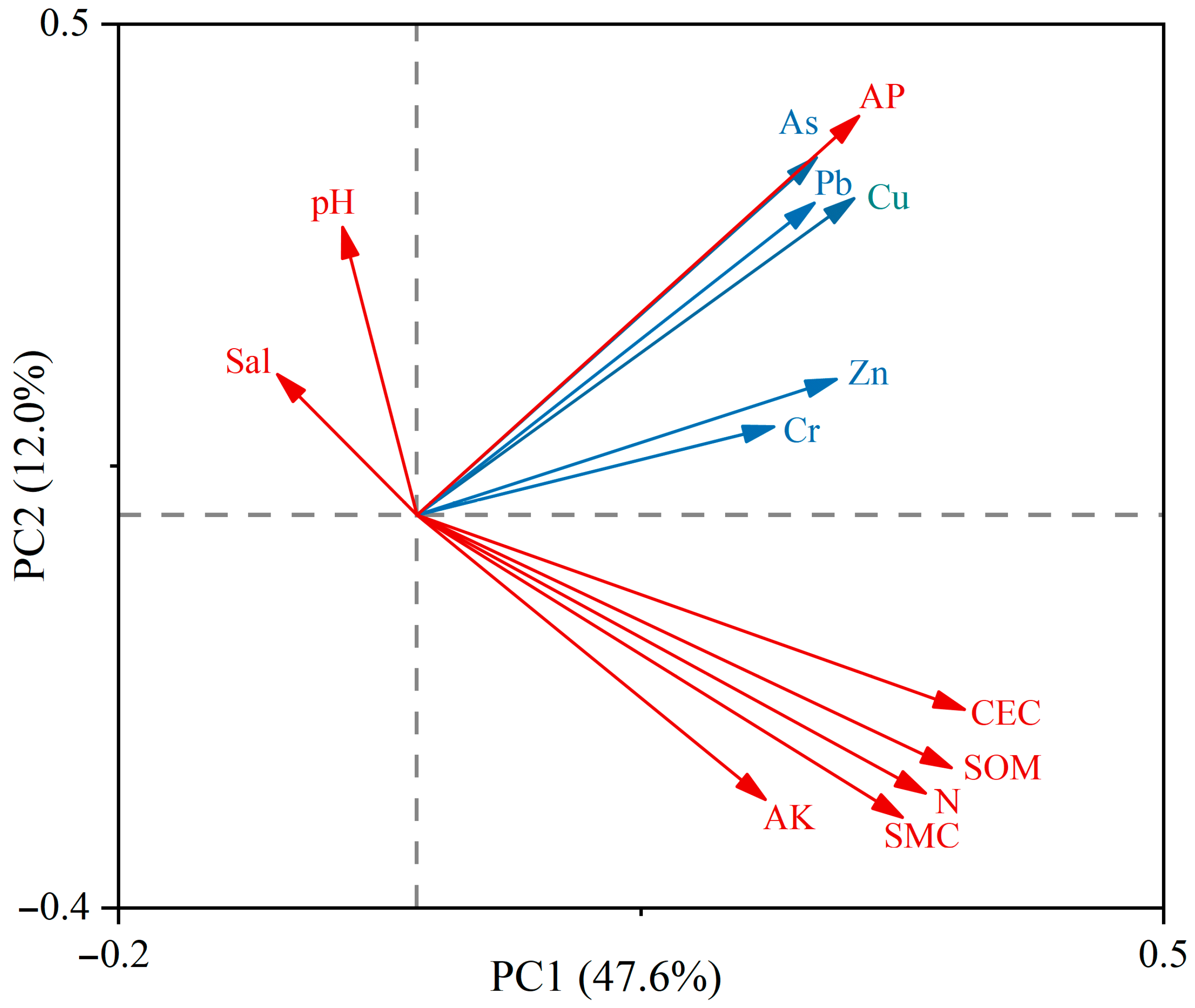 3.5. Differences and Source Distribution of Heavy Metals Under Different Land-Use Types