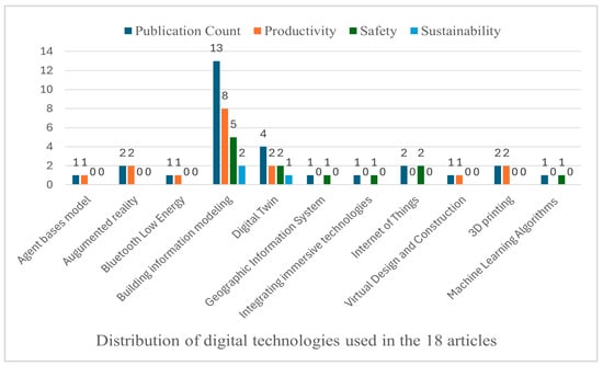 Overall, these findings show that while BIM currently leads the digital transformation of the construction industry, complementary technologies such as DT, IoT, and AR are steadily gaining traction for integrated sustainability and safety management.