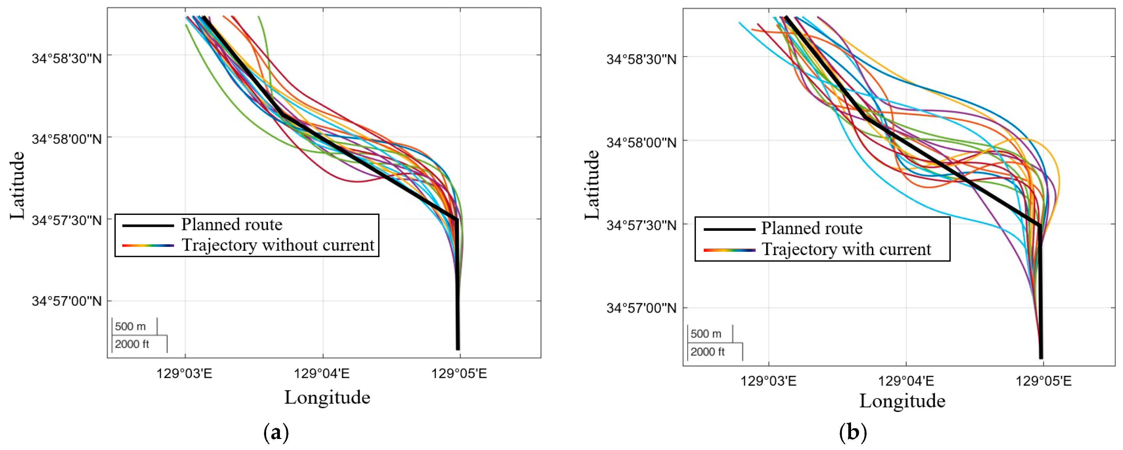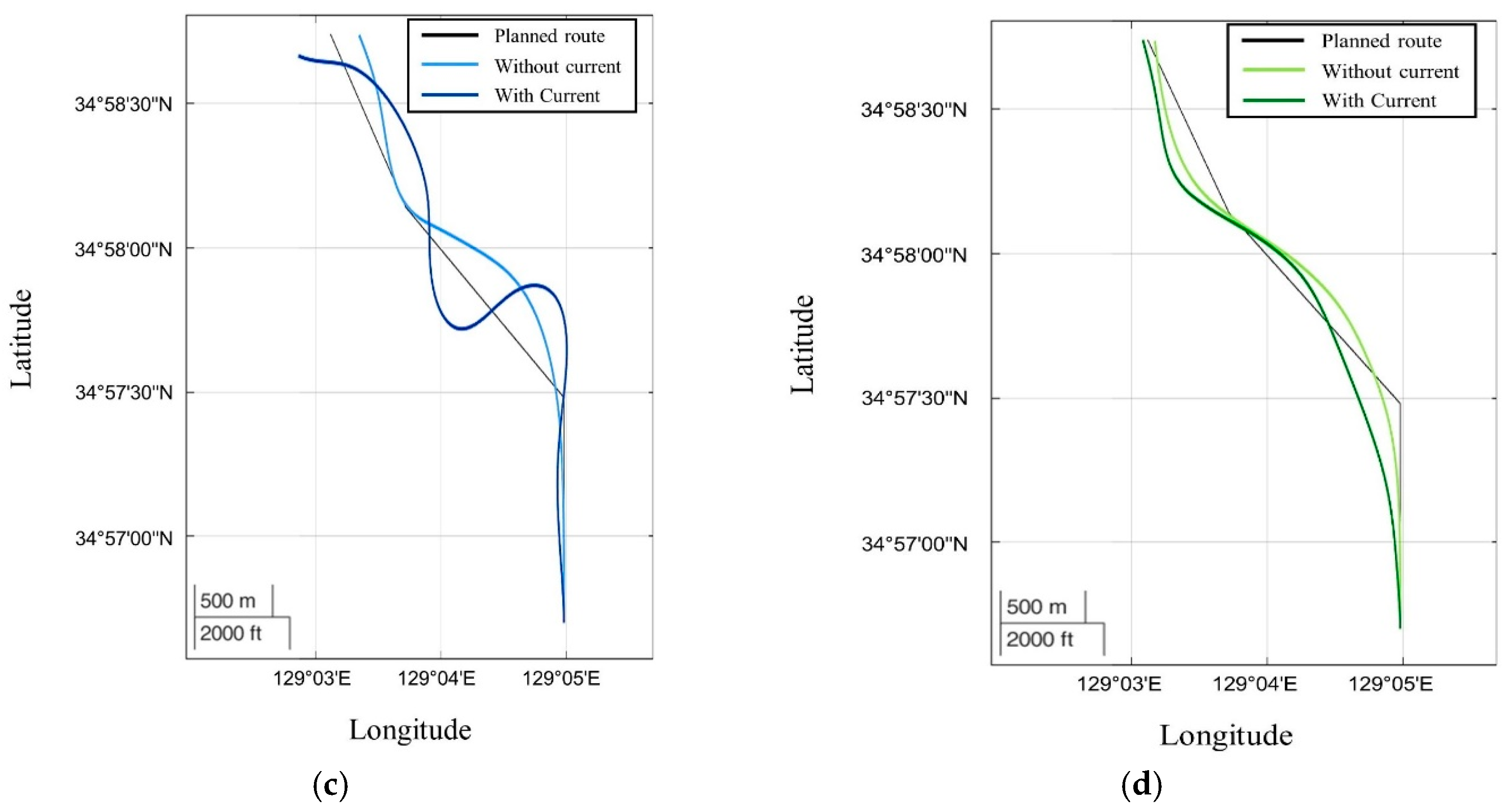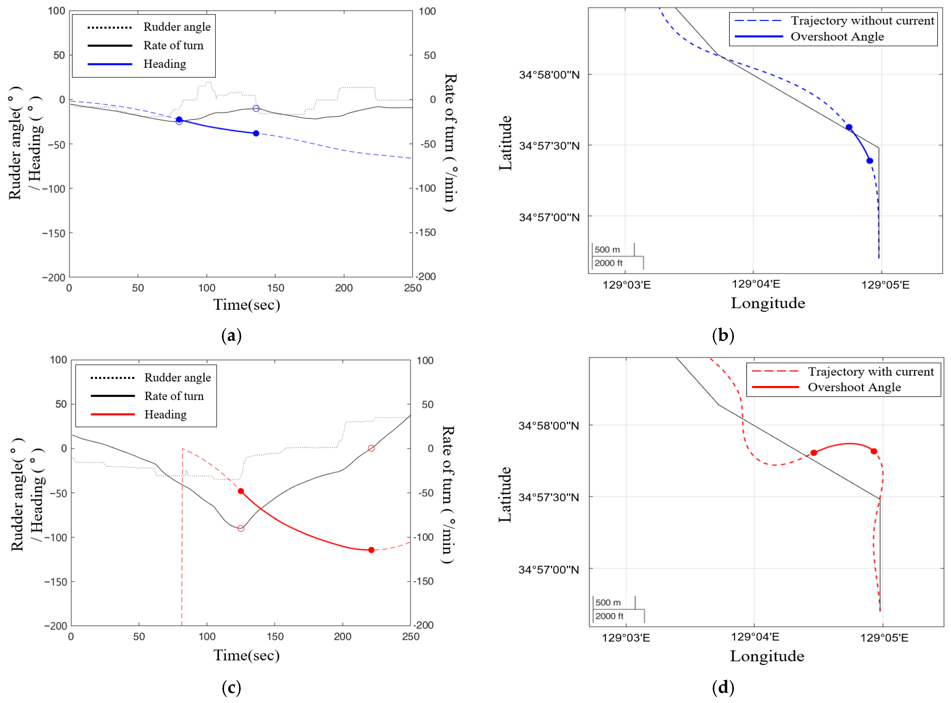 21] analyzed the effects of currents on a ship’s rotation and acceleration and assessed the differences in turning maneuvers under varying current conditions.