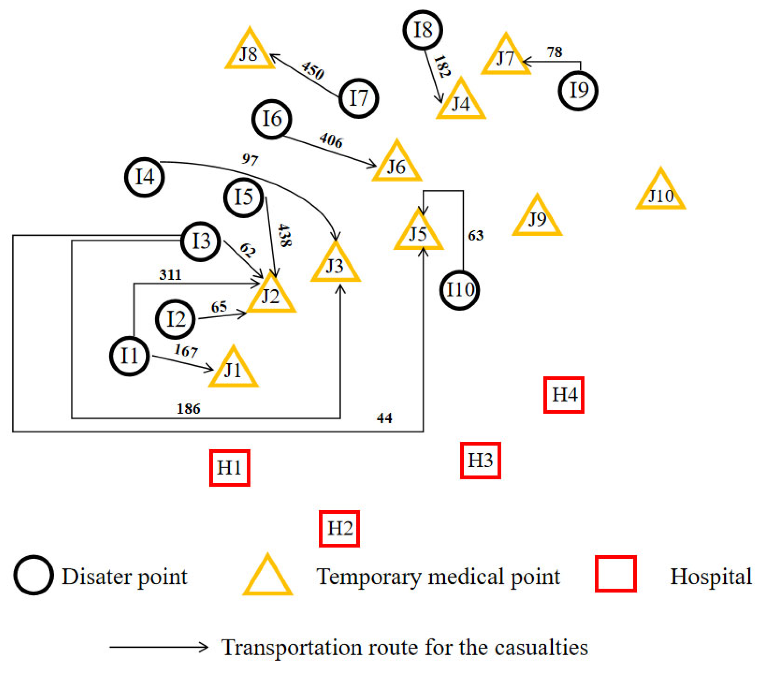 2.2. Casualty Evacuation Considering Facility Location