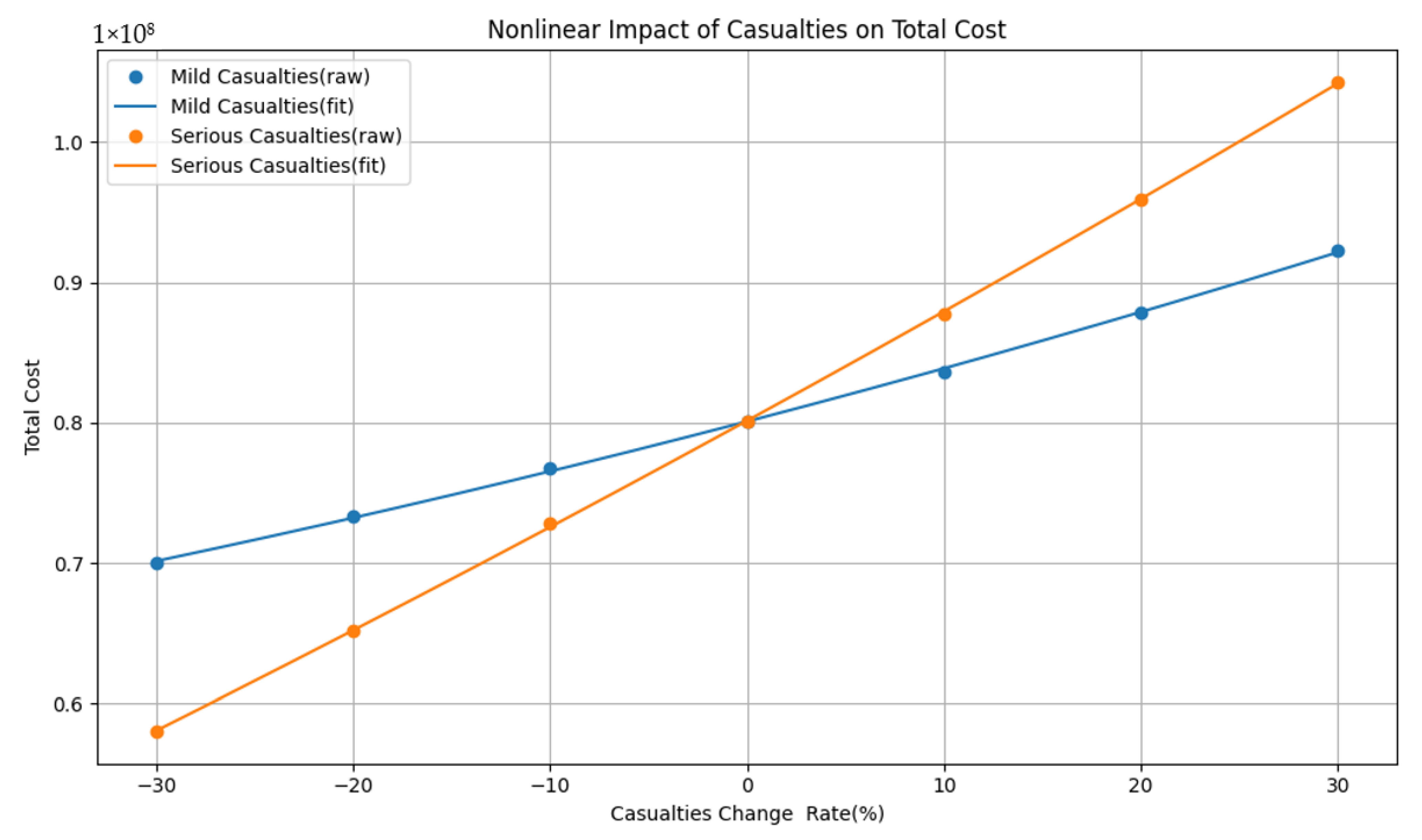 | Scenario | (Mild Casualties) | (Serious Casualties) | Total Cost |