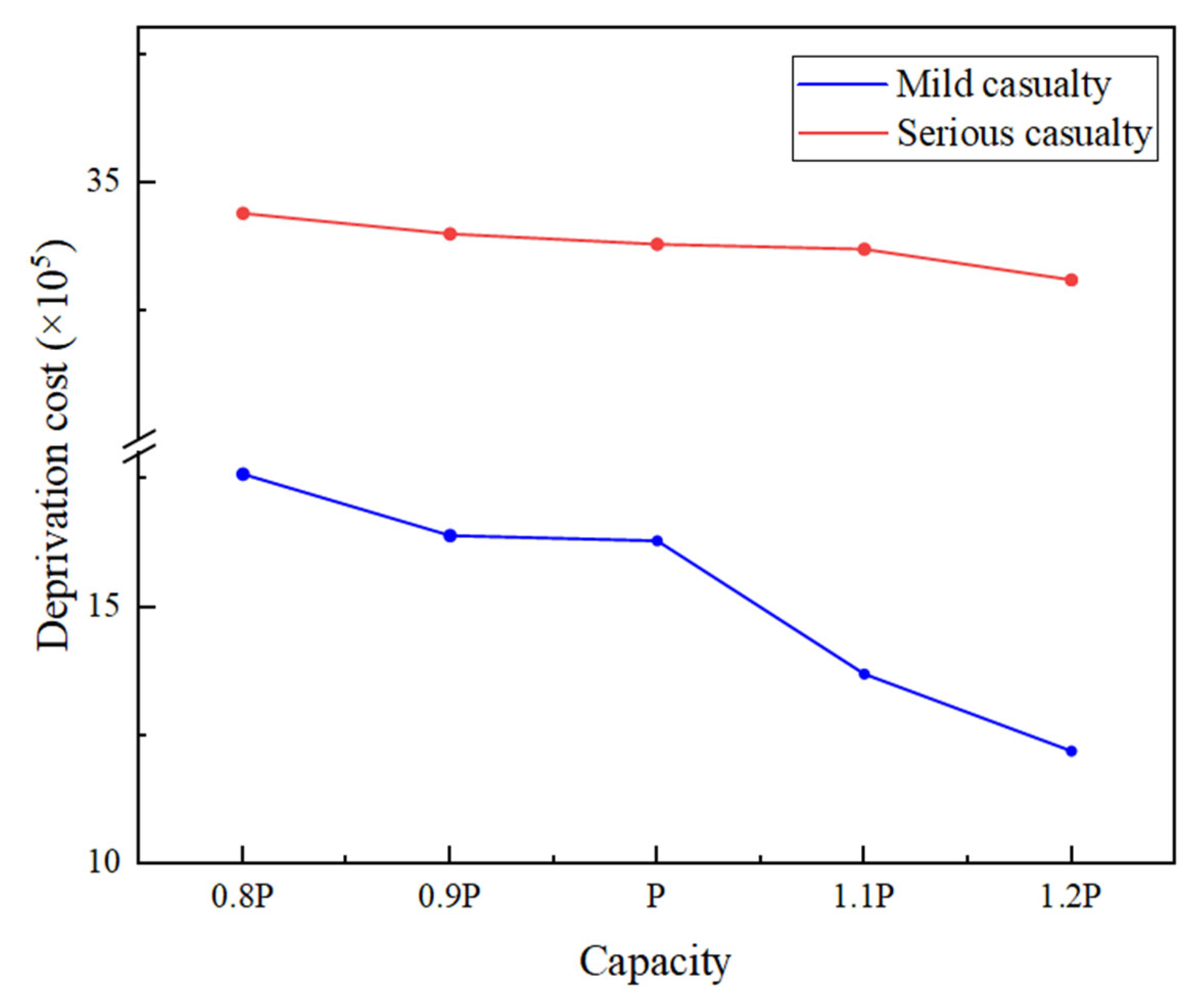 - Deprivation cost of mild and serious casualties;