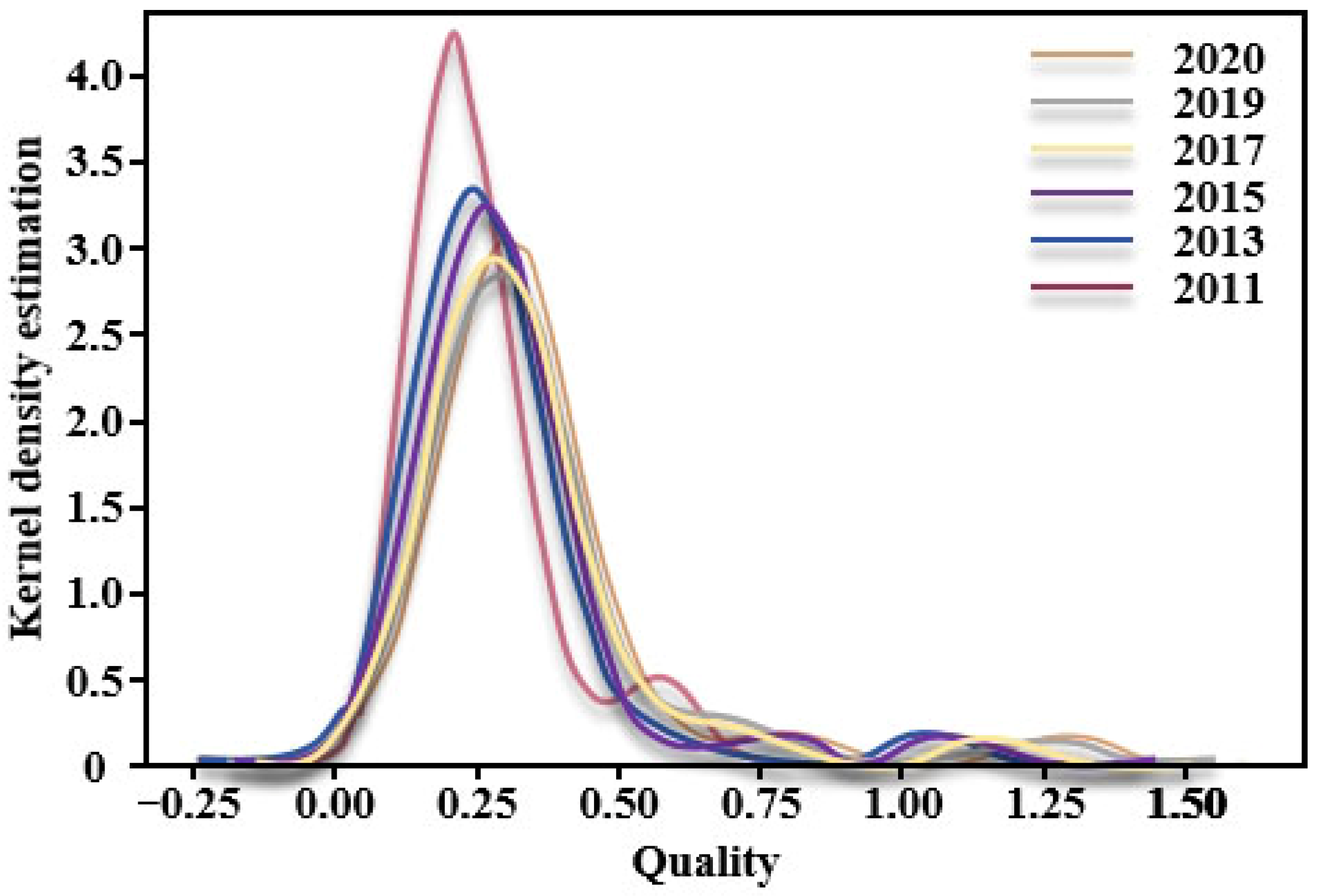 | Baseline Secondary Education Quality | SecEduQuality | Average college entrance exam score (out of 750) | Proxies for the quality of the student pool for higher education, avoiding misattributing basic education advantages to the digital economy [39]. |