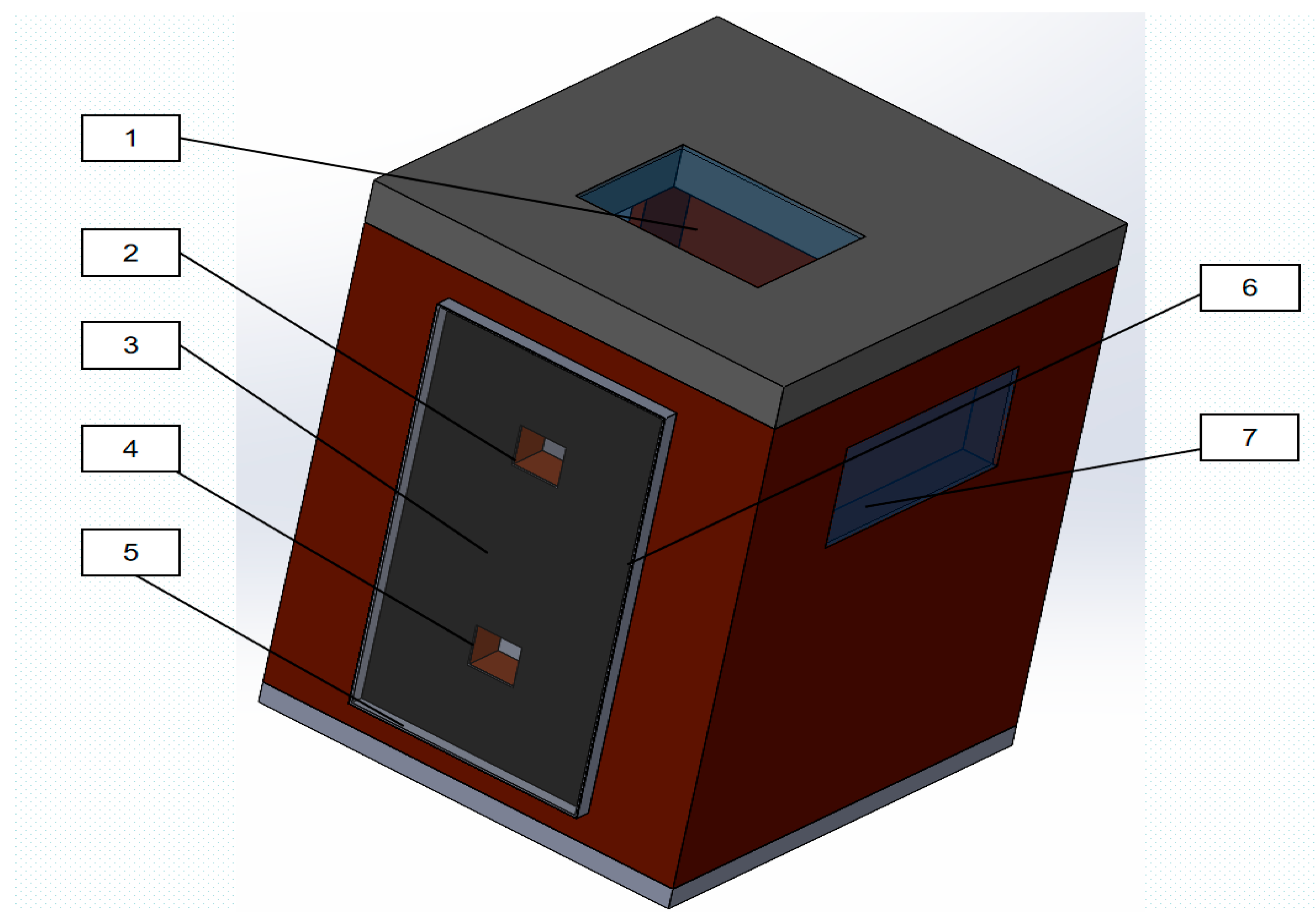 | The collector wall of the toilet | 10 mm black aluminum absorber plate | - | 203 | 0.92 |