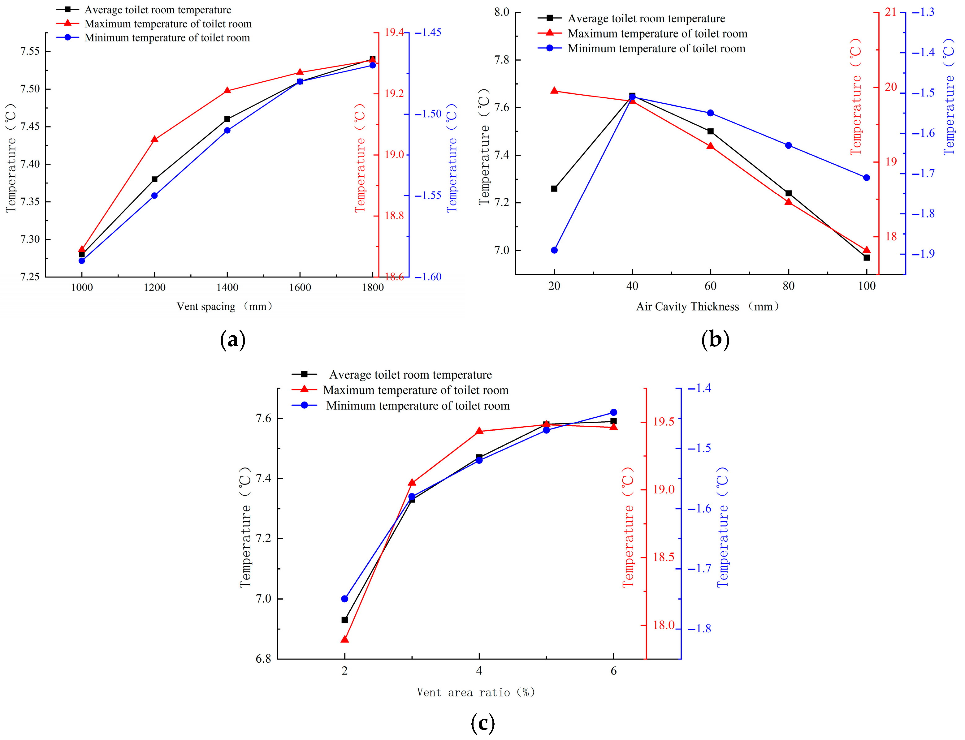 4.1. Influence Mechanism of Key Parameters on the Thermal Environment of Toilet Houses
