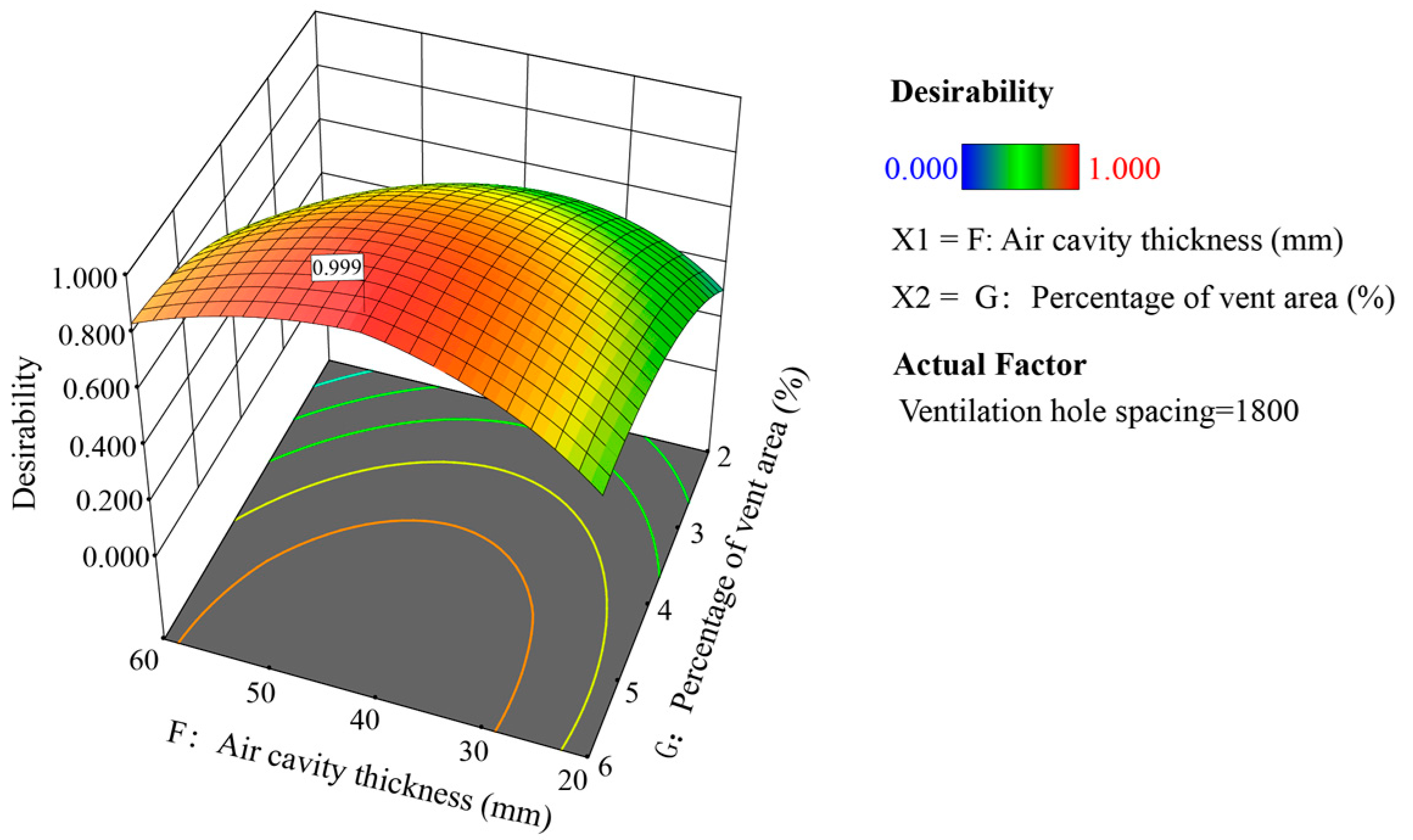 3.2.2. Optimal Parameter Determination of Vent Spacing (E), Air Cavity Thickness (F), and Vent Area Ratio (G) of the Solar Collector Wall