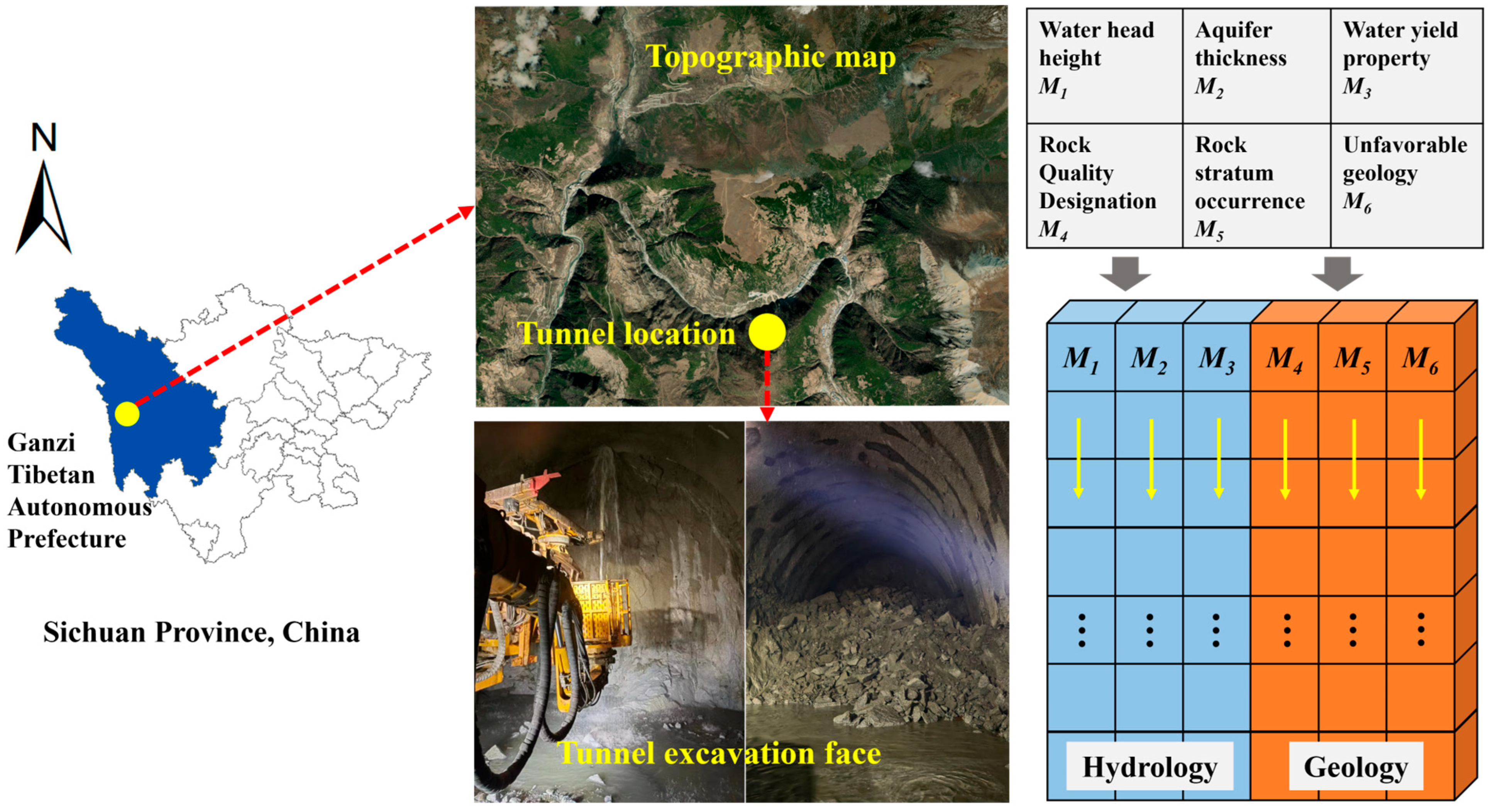 - Wu, X.; Feng, Z.; Yang, S.; Qin, Y.; Chen, H.; Liu, Y. Safety risk perception and control of water inrush during tunnel excavation in karst areas: An improved uncertain information fusion method. Autom. Constr. 2024, 163, 105421. [Google Scholar] [CrossRef]