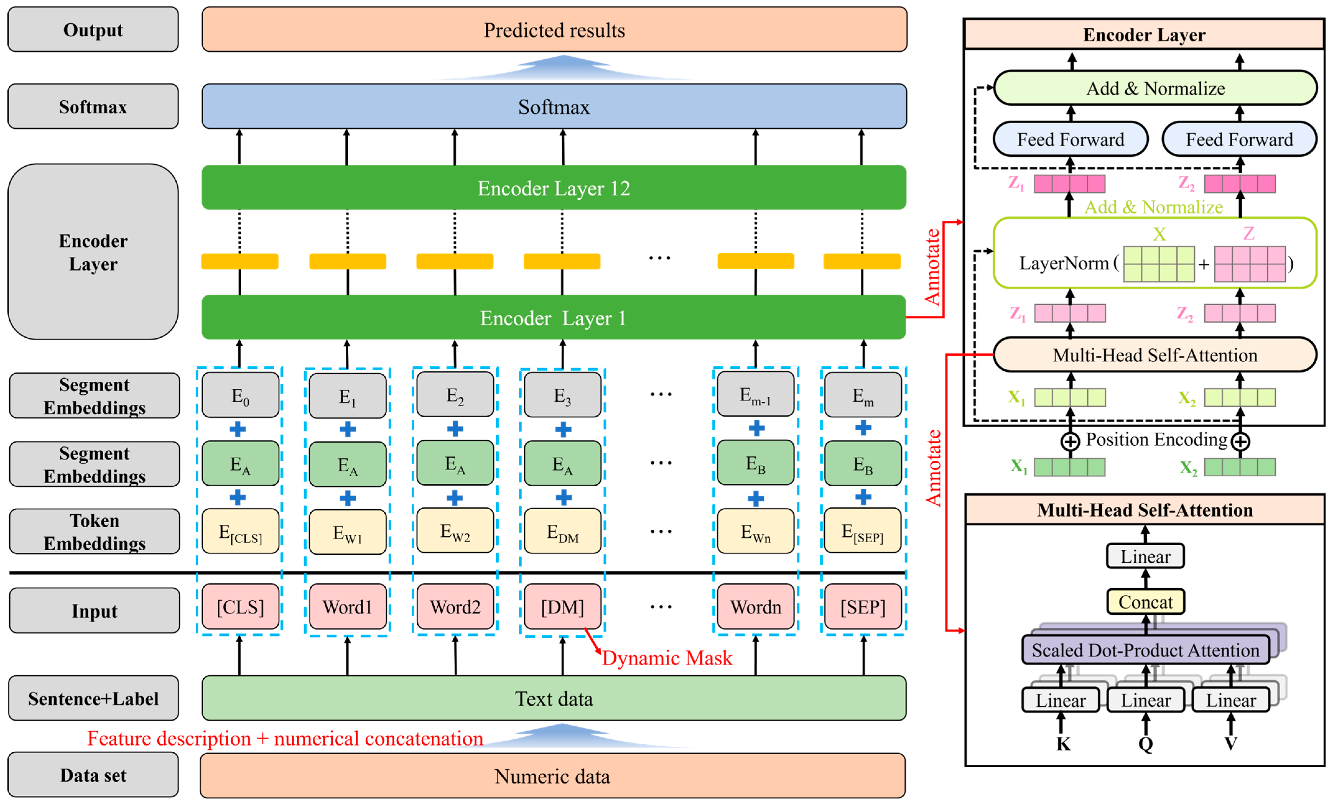 - Specialized large-scale models for water and mud inrush prediction: This study fine-tunes the pre-trained language model RoBERTa using a tunnel water and mud inrush hazard classification dataset, transforming its “language understanding ability” into “numerical prediction capability” to enable intelligent hazard classification. Engineering application results show that, compared to nine other machine learning models, the proposed model achieves an ACC of 99.26% and an F1W of 99.25%, demonstrating superior prediction accuracy and strong robustness.