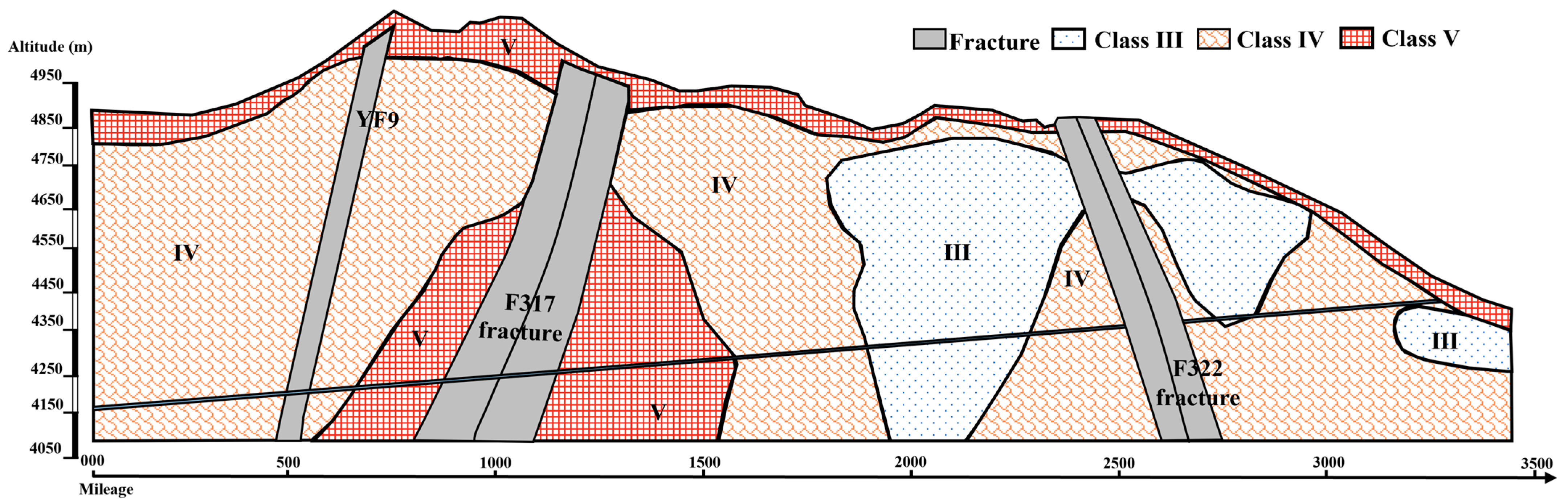 - Liu, N.; Pei, J.; Cao, C.; Liu, X.; Huang, Y.; Mei, G. Geological investigation and treatment measures against water inrush hazard in karst tunnels: A case study in Guiyang, southwest China. Tunn. Undergr. Space Technol. 2022, 124, 104491. [Google Scholar] [CrossRef]
