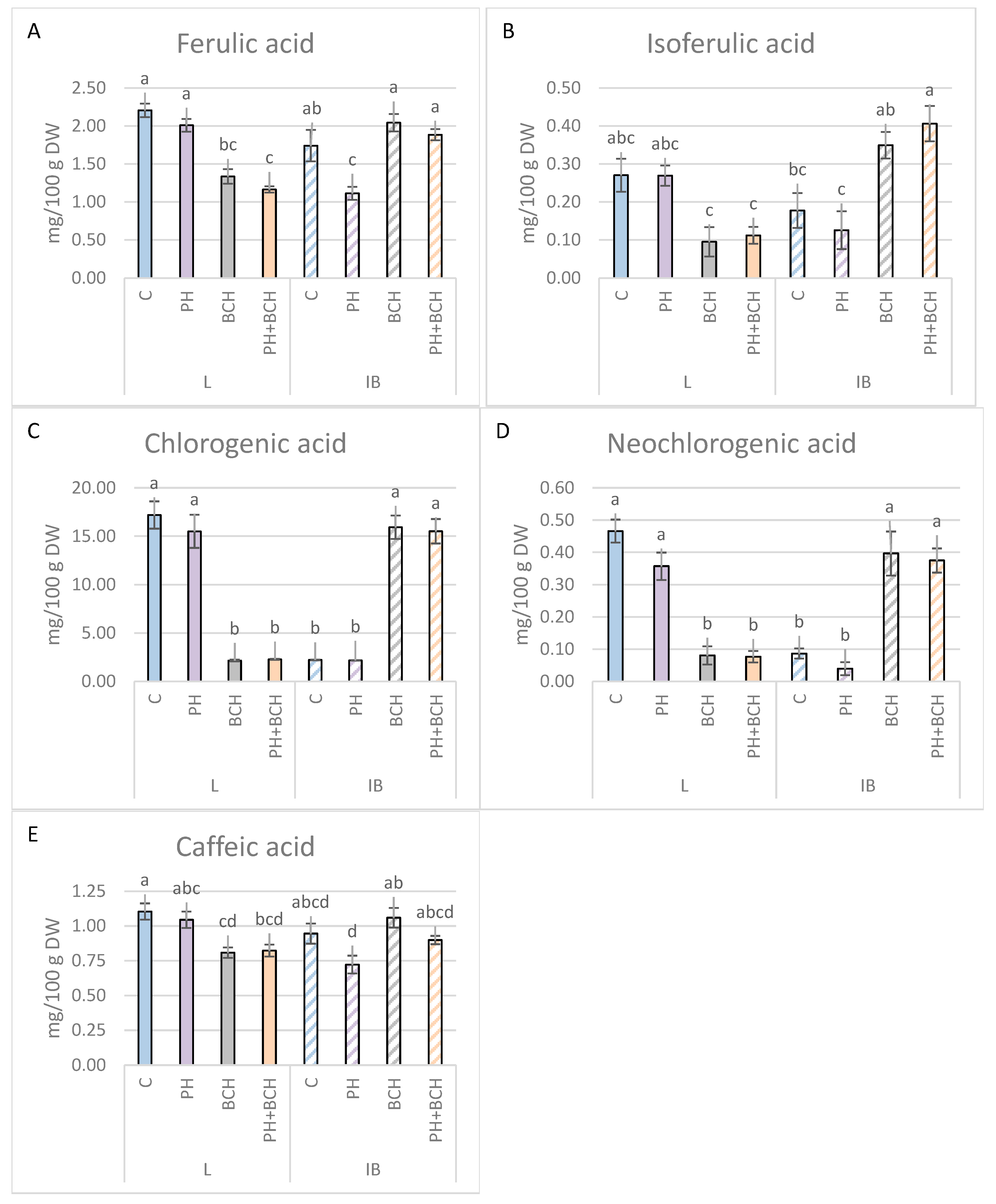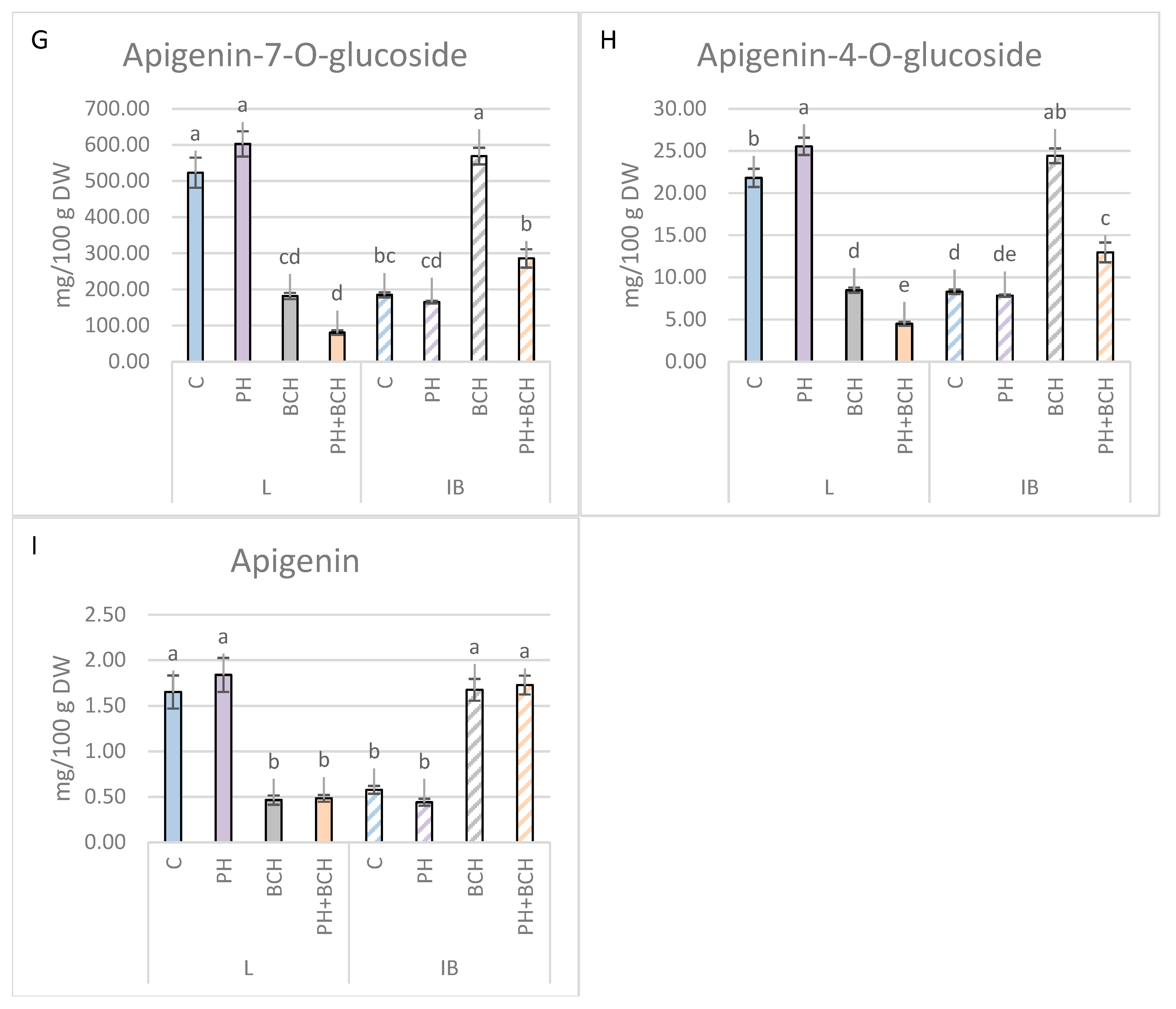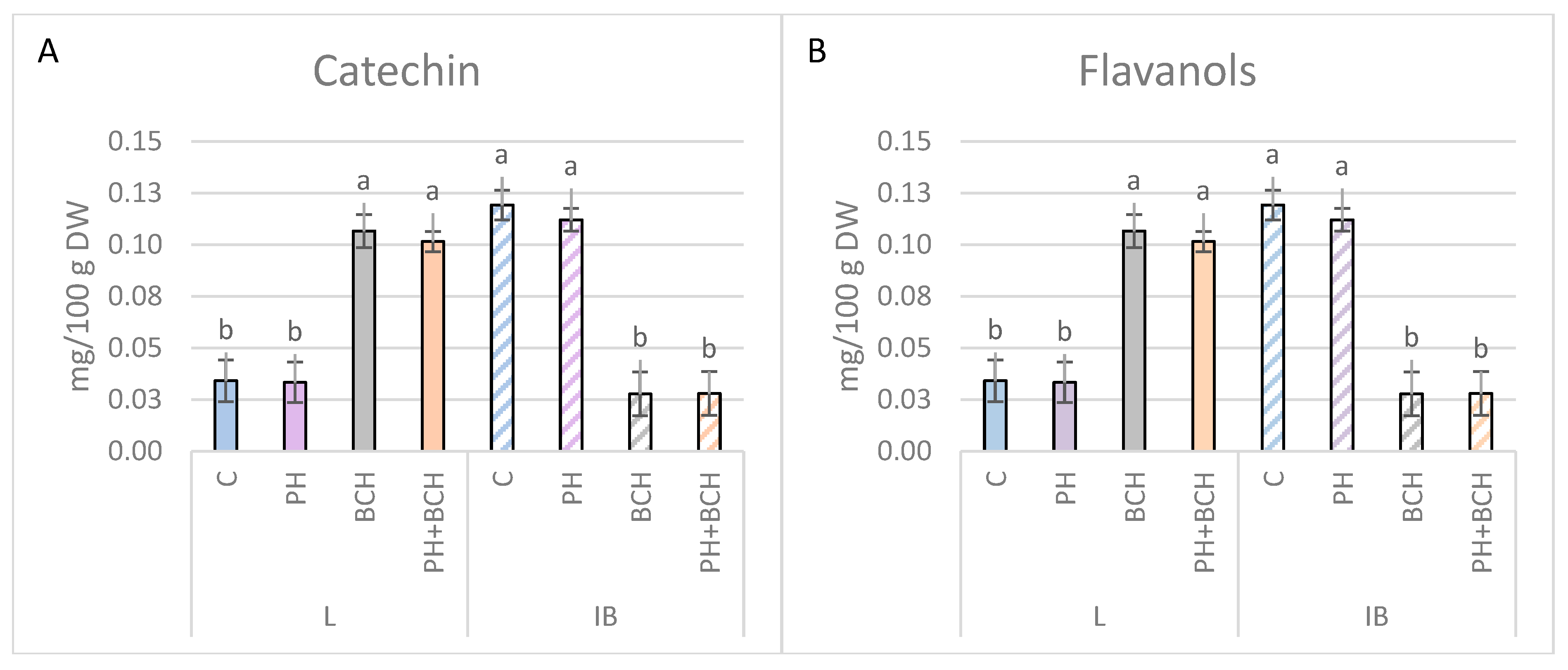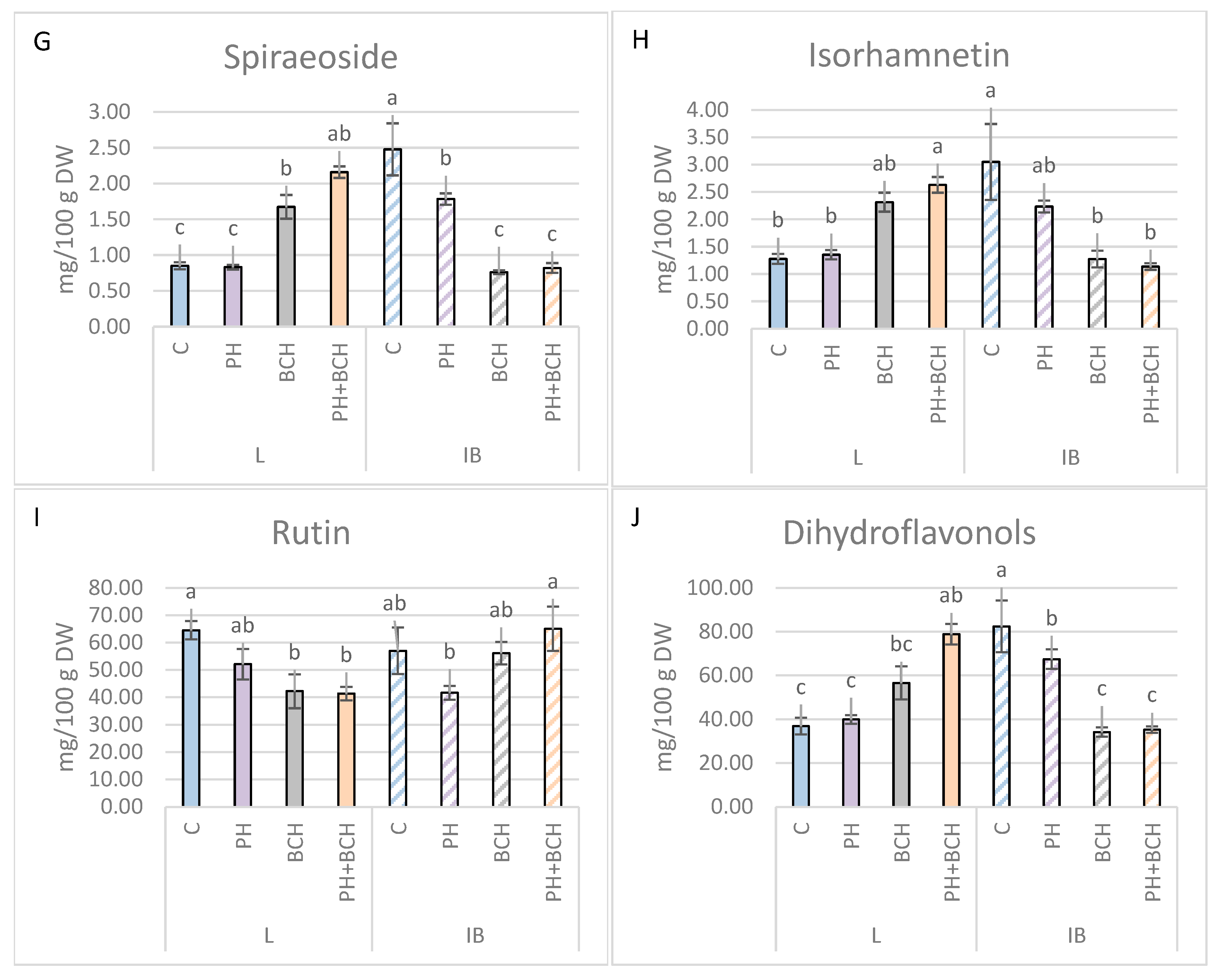 3.1. Effects of Biochar and/or Phenolic Extracts on Phenolic Contents in Olive Leaves