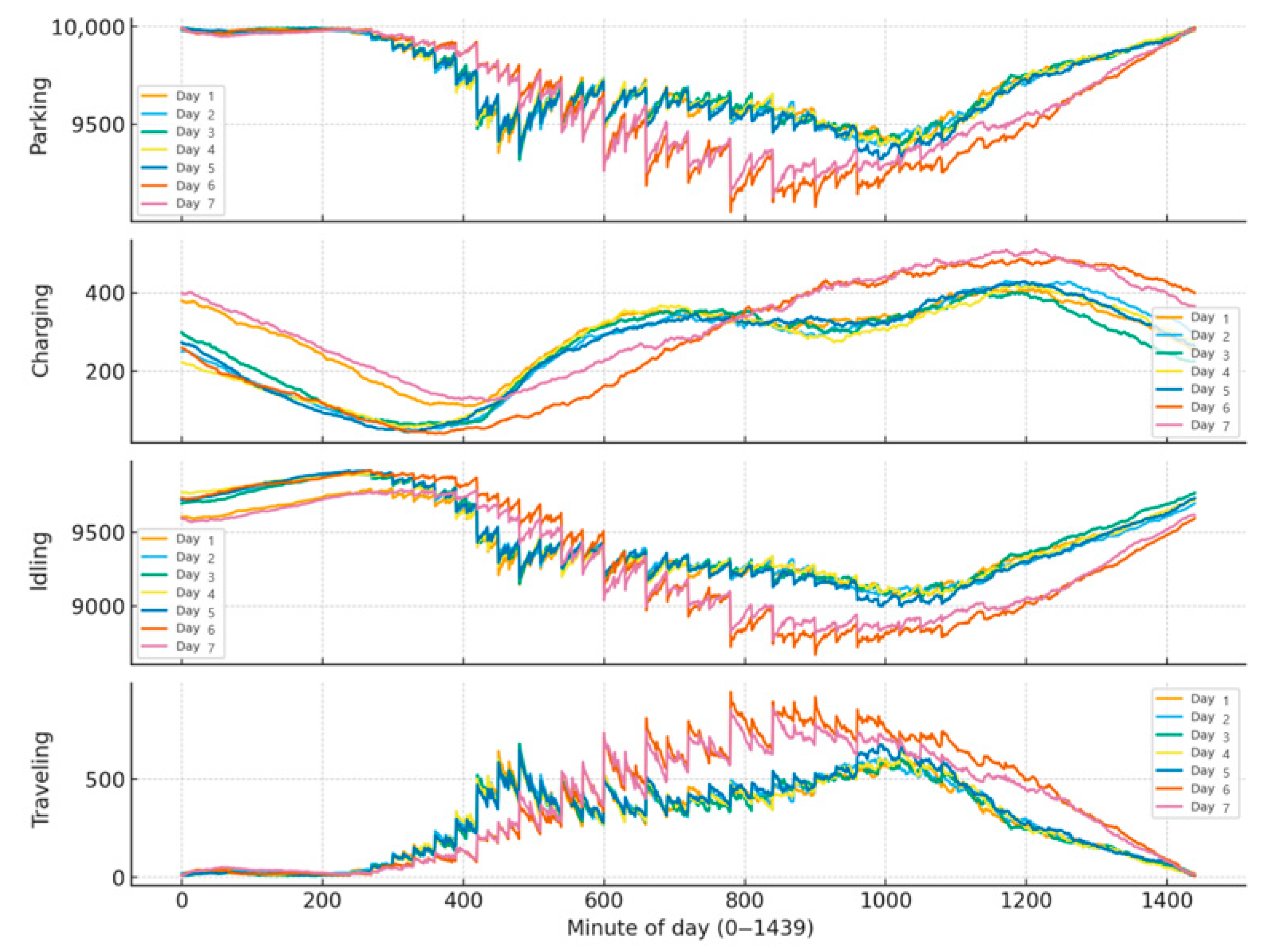 3.2. EV Behavioral Dynamics and Flexibility Traces