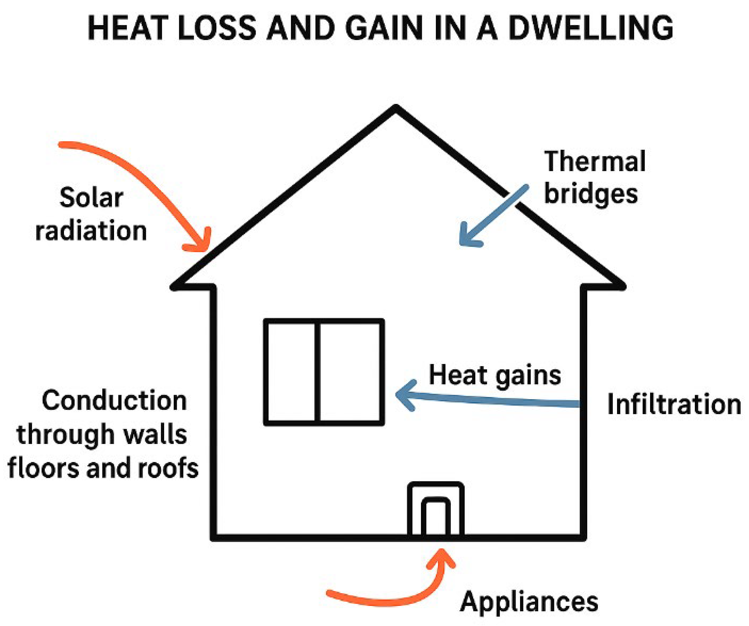 62]. An overview of heat loss and gain in a dwelling is presented in