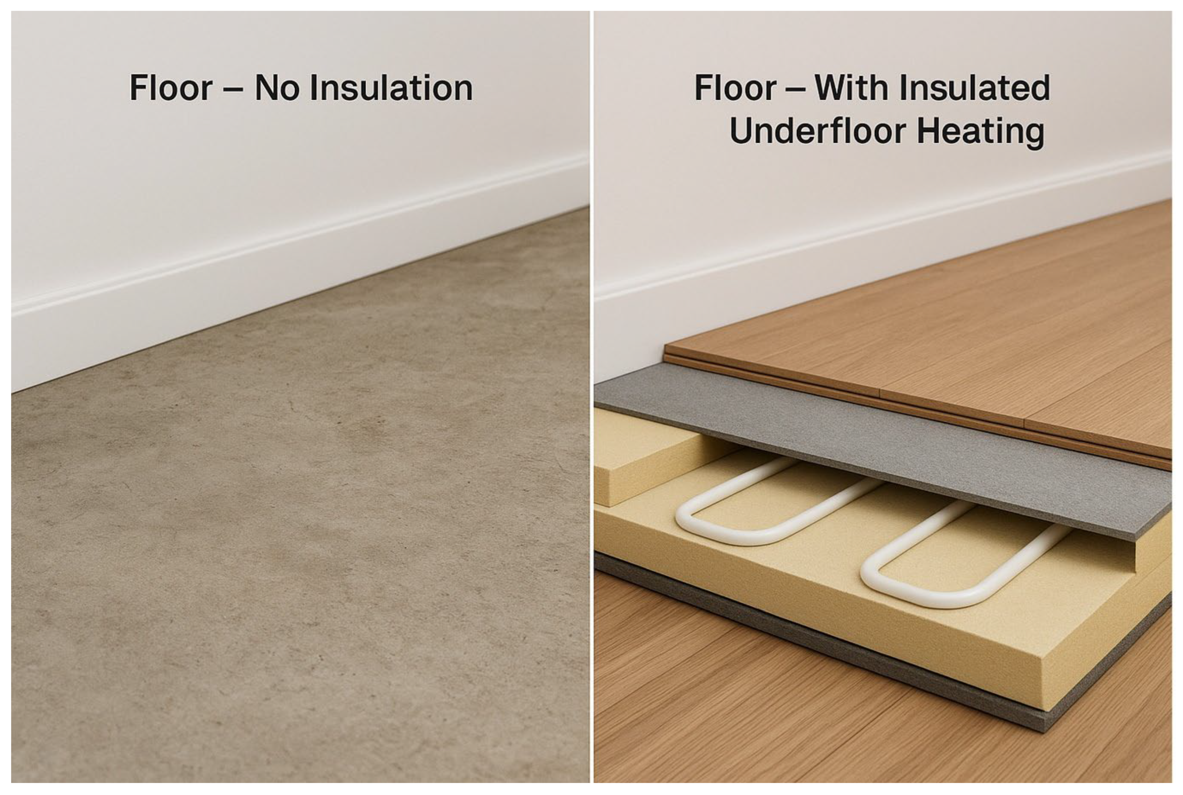 Similarly, upgrading windows and doors to high-performance double or triple glazing minimises conduction and air infiltration, with airtight sealing around frames to prevent bridging. Finally, achieving airtightness throughout the dwelling by sealing gaps and service penetrations reduces uncontrolled air leakage, though it must always be balanced with proper ventilation to maintain healthy indoor air quality [