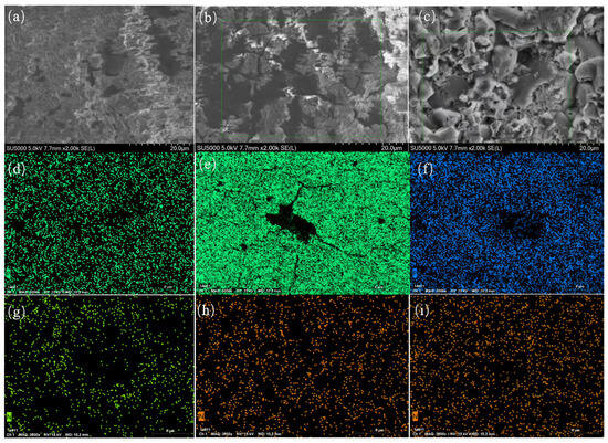 (a,d,g) depict the SEM image, phosphorus EDS micrograph, and nitrogen EDS micrograph of T20–1, respectively; (b,e,h) illustrate the SEM image, phosphorus EDS micrograph, and nitrogen EDS micrograph of T20–2, respectively; (c,f,i) present the SEM image, phosphorus EDS micrograph, and nitrogen EDS micrograph of T20–3, respectively.