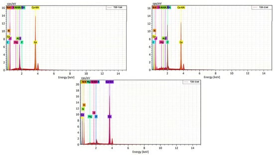 EDS Element Mapping of T20-1, EDS Element Mapping of T20-2, EDS Element Mapping of T20-3.