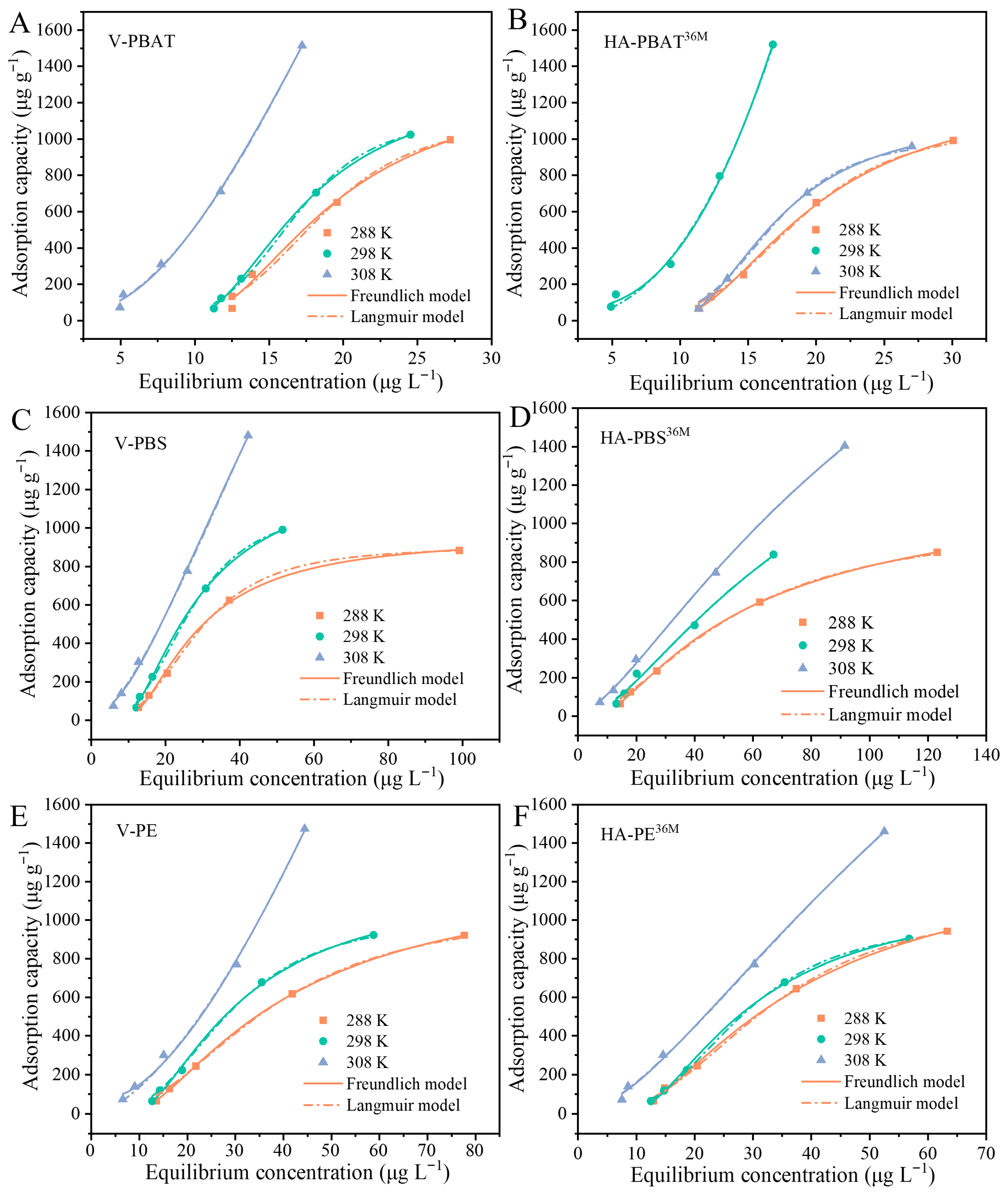 3.4. Adsorption Isotherms of BaP on Different MPs