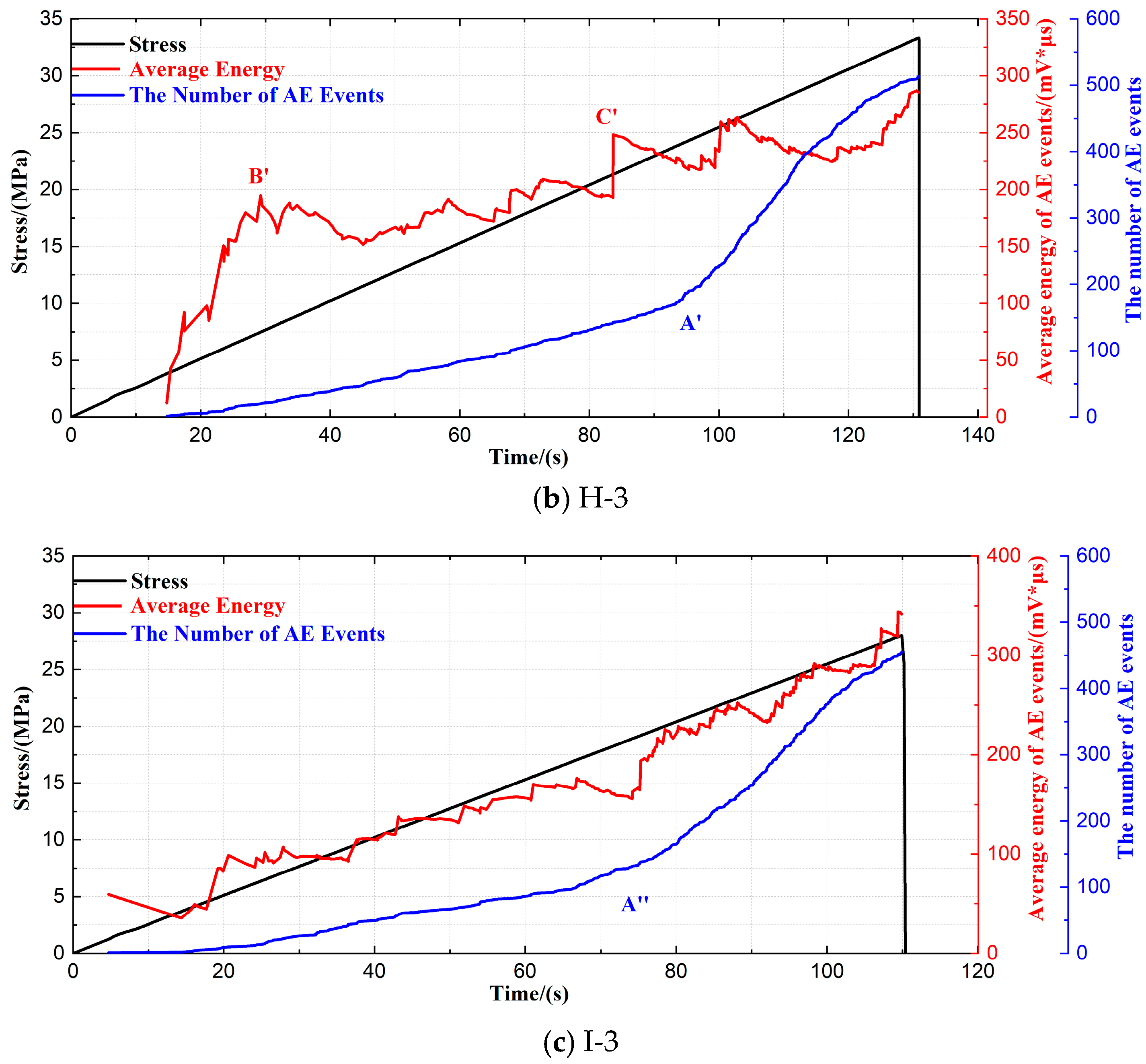 - Wang, Z.; Wang, J.; Yang, S.; Li, L.; Li, M. Failure behaviour and acoustic emission characteristics of different rocks under uniaxial compression. J. Geophys. Eng. 2020, 17, 76–88. [Google Scholar] [CrossRef]