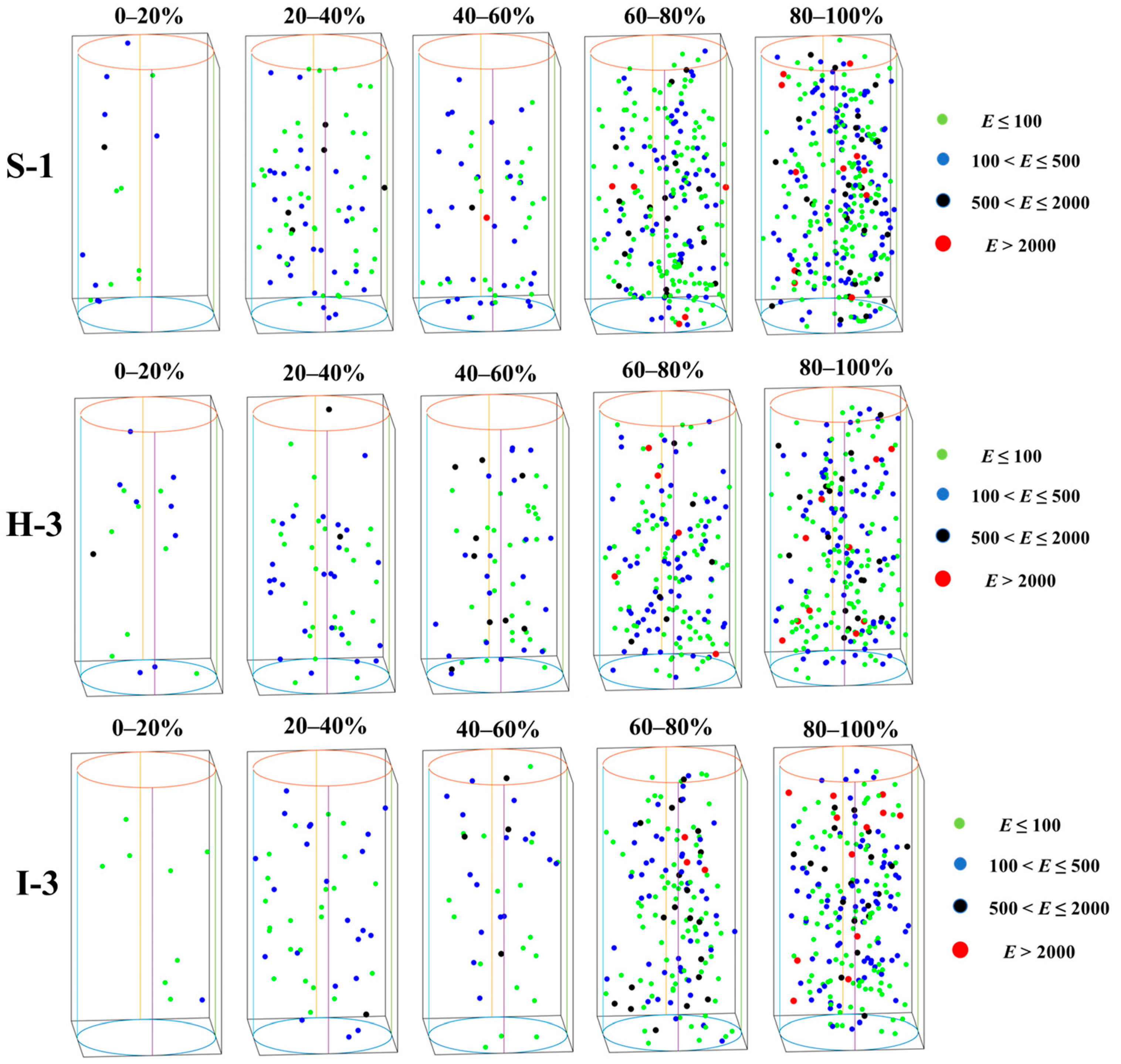 4.1. Quantitative Characterization of Multidimensional Correlation of AE Events