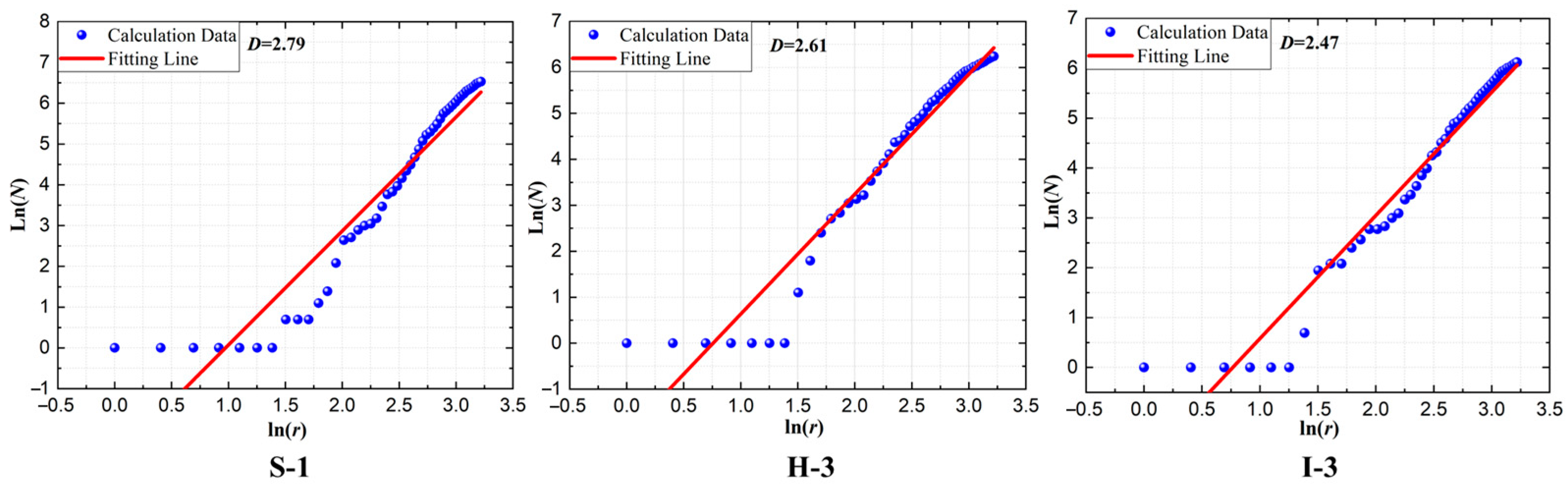 - Zhou, Z.; Zhao, C.; Cai, X.; Huang, Y. Three-dimensional modeling and analysis of fractal characteristics of rupture source combined acoustic emission and fractal theory. Chaos Solitons Fractals 2022, 160, 112308. [Google Scholar] [CrossRef]