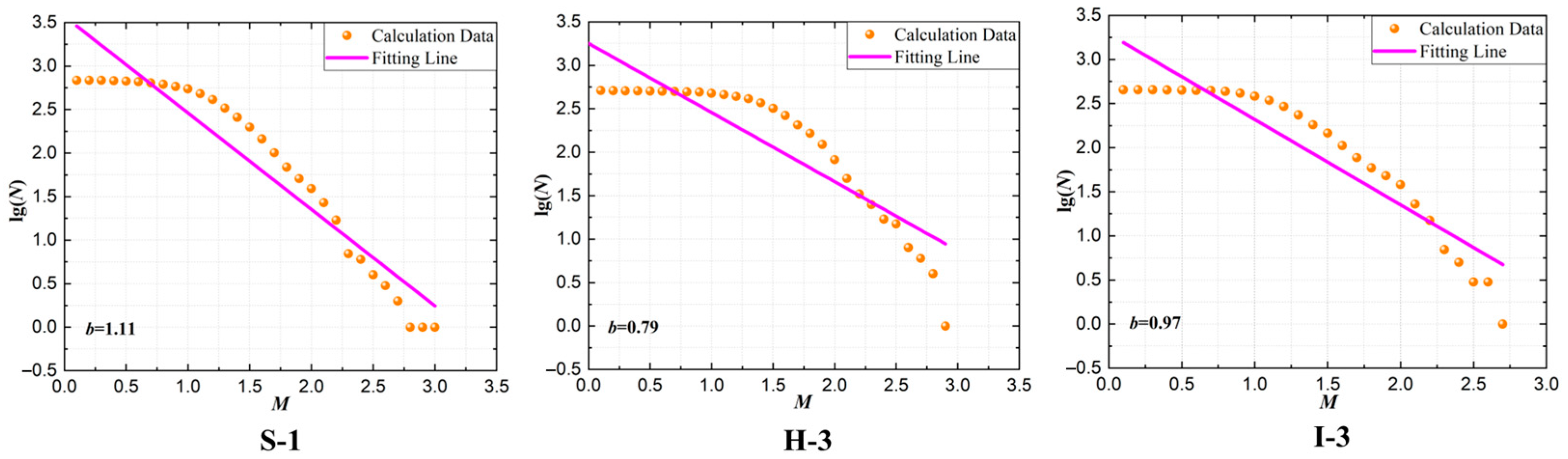 - Lei, X. Evolution of b-value and fractal dimension of acoustic emission events during shear rupture of an immature fault in granite. Appl. Sci. 2019, 9, 2498. [Google Scholar] [CrossRef]