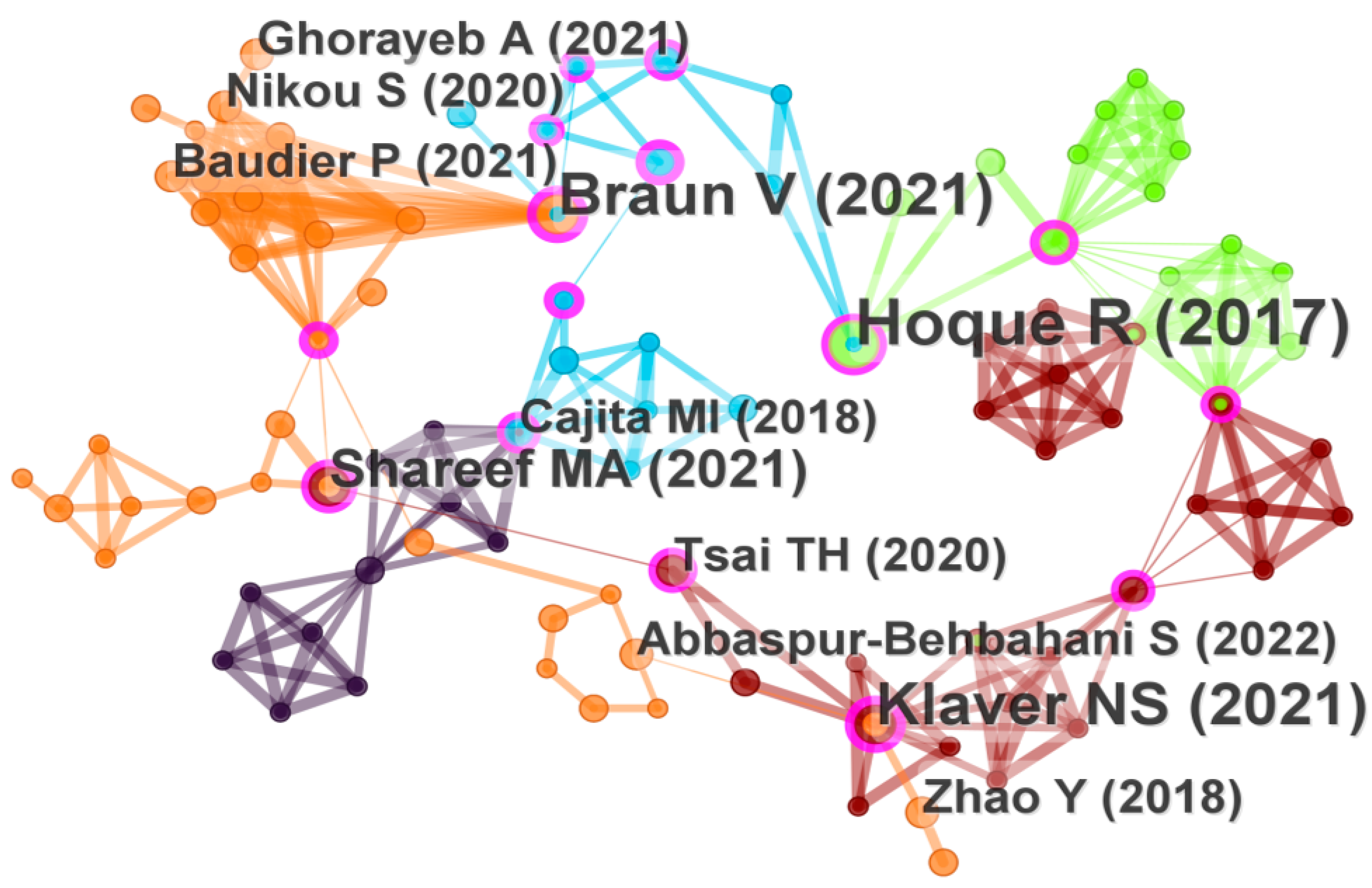3.1.2. Six Knowledge Clusters: Mapping the Research Front Structure