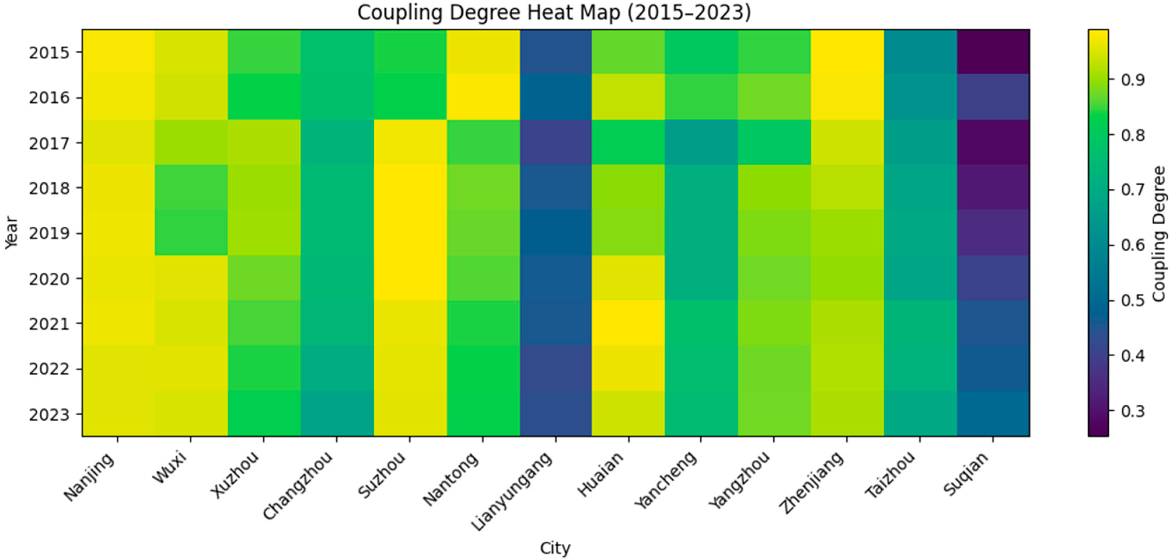 3.1. Coupling Degree Analysis