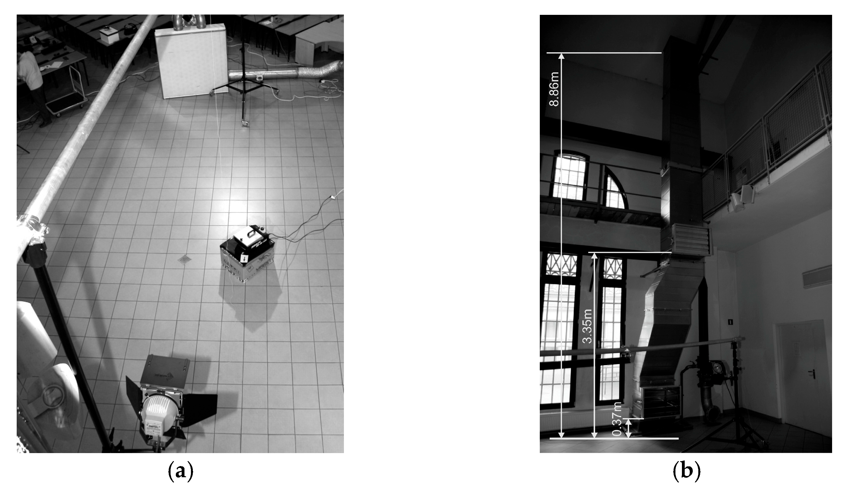 - Zhang, Q.; Zhang, X.; Ye, W.; Liu, L.; Nielsen, P.V. Experimental Study of Dense Gas Contaminant Transport Characteristics in a Large Space Chamber. Build. Environ. 2018, 138, 98–105. [Google Scholar] [CrossRef]