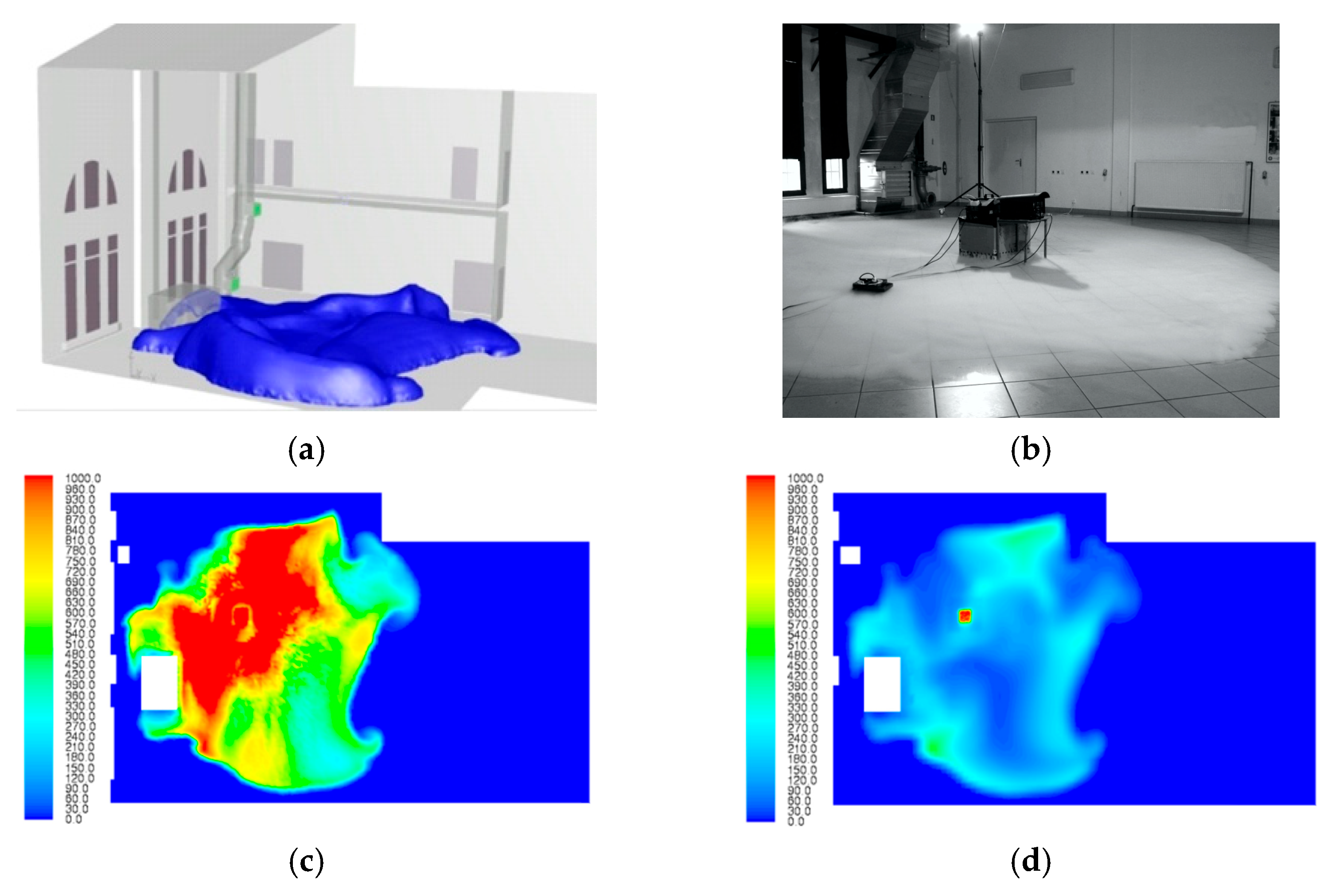 - Dong, L.; Zuo, H.; Hu, L.; Yang, B.; Li, L.; Wu, L. Simulation of Heavy Gas Dispersion in a Large Indoor Space Using CFD Model. J. Loss Prev. Process Ind. 2017, 46, 1–12. [Google Scholar] [CrossRef]
