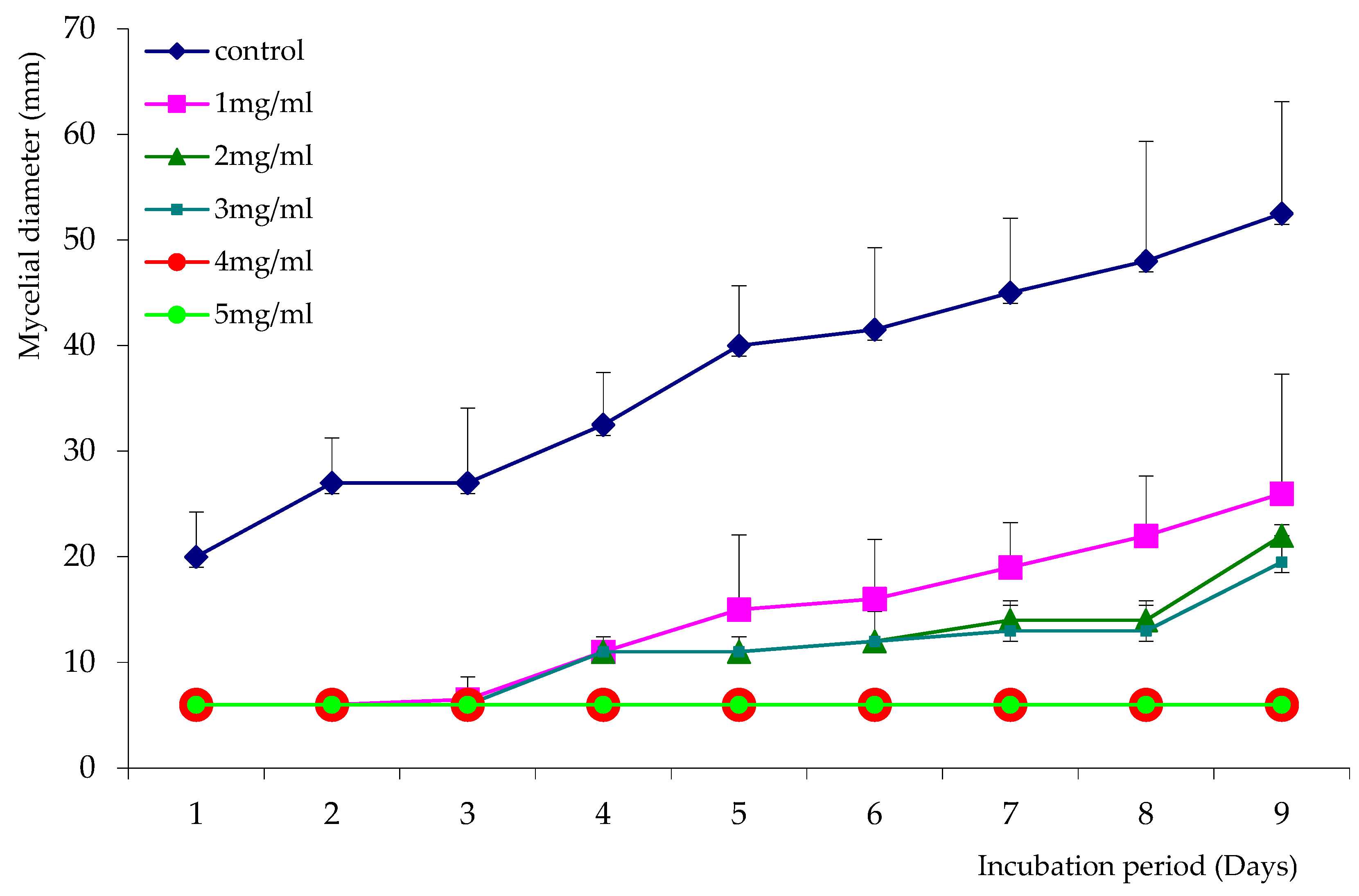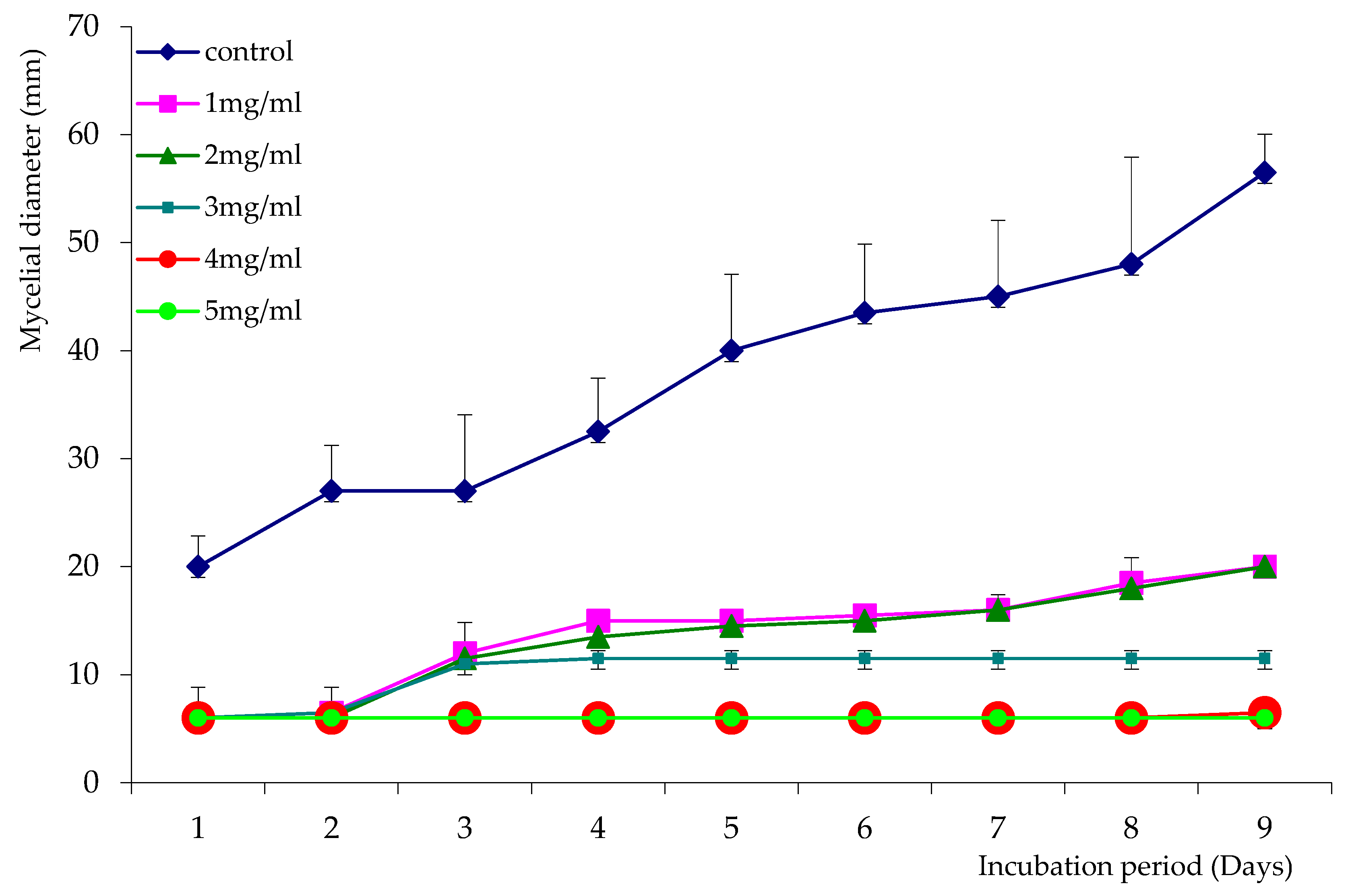 2.5. Determination of Fungal Activity of Essential Oils