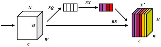 Proposed by Hu [33], the SE (Squeeze-and-Excitation) layer constitutes a lightweight attention module that intensifies focus on diagnostically relevant time-frequency feature map channels while attenuating less pertinent ones along the channel dimension, thereby enhancing classification accuracy. As illustrated in Figure 1, this attention mechanism operates through three principal stages: Squeeze, Excitation and Reweight.