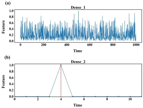 Dense layer visualization. ((a) is the Dense_1 graph of the CWT-MHA-CNN model, and (b) is the Dense_2 graph of the CWT-MHA-CNN model).