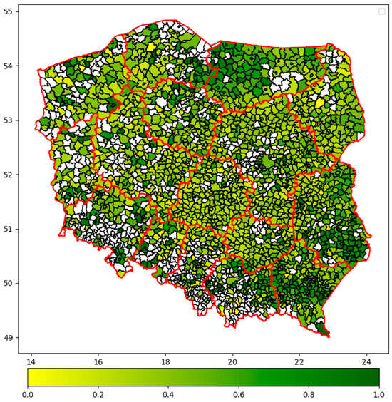 - GUS (Statistics Poland); Bank Danych Lokalnych (Local Data Bank). The Prices Purchase/Sale of Agriculture Land per ha in Private Turnover 2024. Available online: https://bdl.stat.gov.pl/bdl/dane/podgrup/temat (accessed on 21 November 2024).