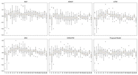 Figure 10 shows that the error of our proposed model has the smallest interquartile and three-quarter interquartile range of its error distribution and the most stable error.