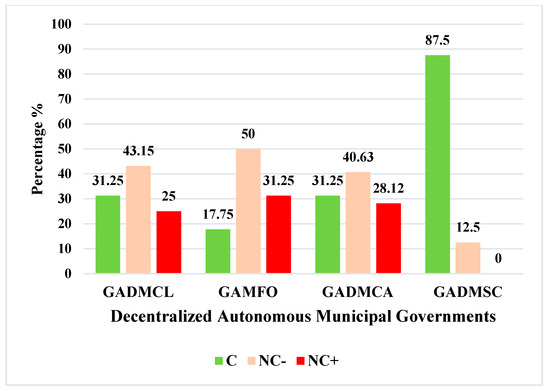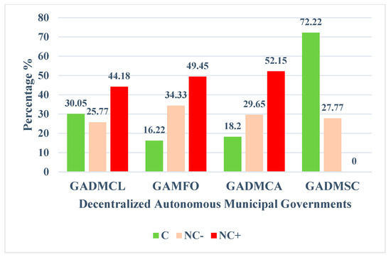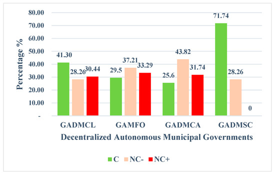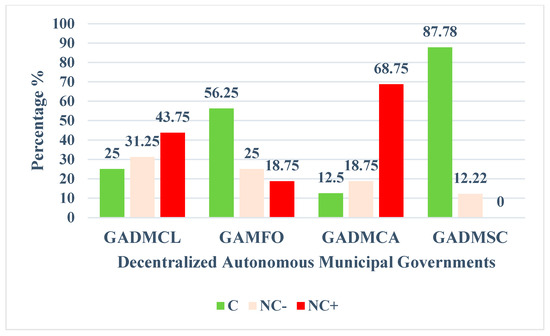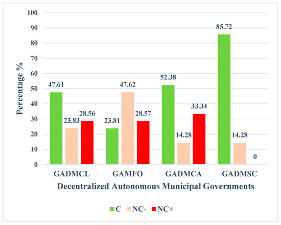 Table 4 was used to facilitate the evaluation, assessment, and determination of the findings in accordance with Conformity (C), Minor Non-Conformity (NC−), Major Non-Conformity (NC+), and the Level of Compliance. Likewise, the findings were evaluated in accordance with the provisions of the regulations set forth in the Organic Environmental Code (RCOA), Articles 499, 500, and 501 [48].