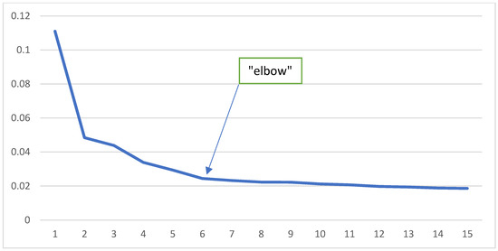 Correspondence analysis was employed to explore associations among variables characterising respondents’ leisure time. This method is well-suited for qualitative data analysis and aims to unveil relationships between variables and subjects (respondents) without making prior assumptions about them. When dealing with multiple characteristics, multivariate analysis is applied, employing one of four approaches to record the observed counts of feature categories: composite marker matrix, Burt’s matrix, multivariate contingency analysis, and combined contingency table. In this study, the data were recorded using the second approach, i.e., the Burt matrix, which is the most commonly utilised foundation for conducting correspondence analysis [42,43,44,45,46]. The dimension of the genuine co-occurrence space (K) was subsequently ascertained based on the following Formula (2):