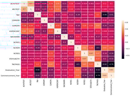 Likewise, major, general situation, and enrollment status may also demonstrate a high correlation with GPA, which means there are certain variables which can correlate with GPA. So, for the better estimation of students’ performance and relevant factors, the selection of the variables should be precise and careful. In the next steps, we will develop a correlation matrix and various models to understand what features affect students’ performance, which is measured via cumulative GPA. Figure 3 provides the correlation matrix of the variables.