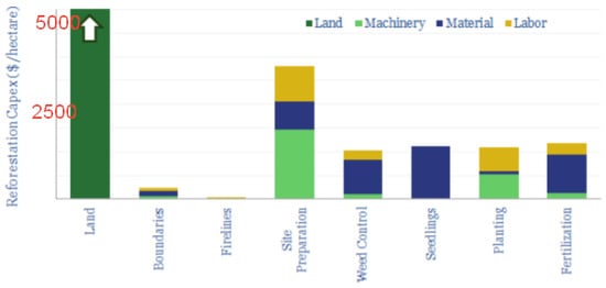 International CAPEX costs for afforestation projects by CAPEX component. Source: Thunder Said Energy [39].