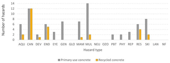 Number of hazards found for each hazard type for the concrete material group.